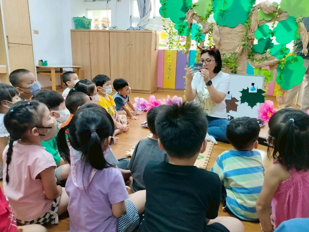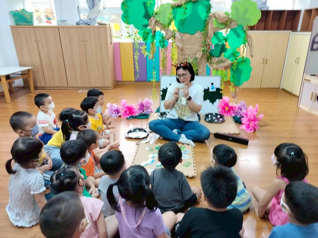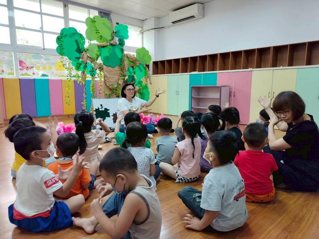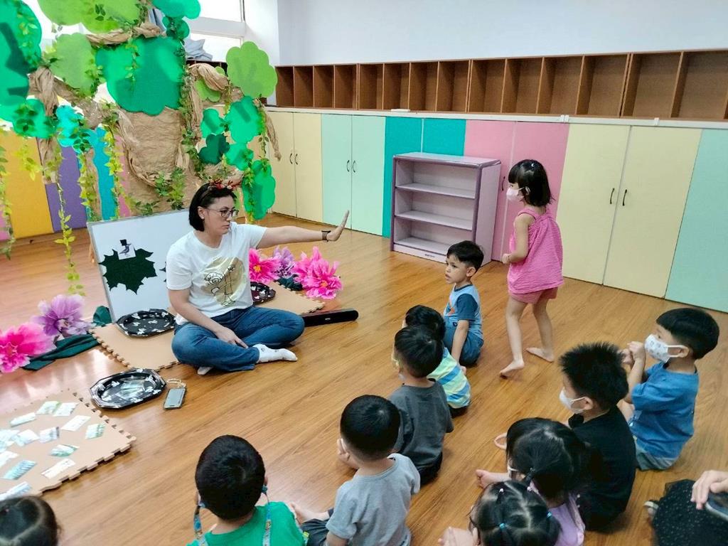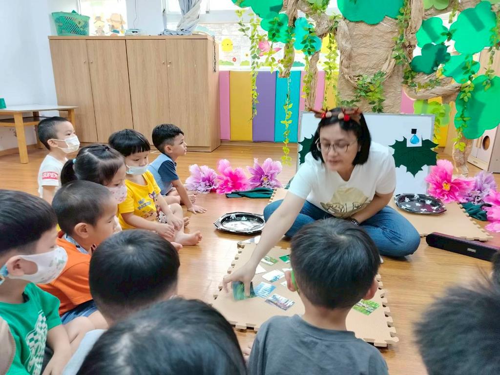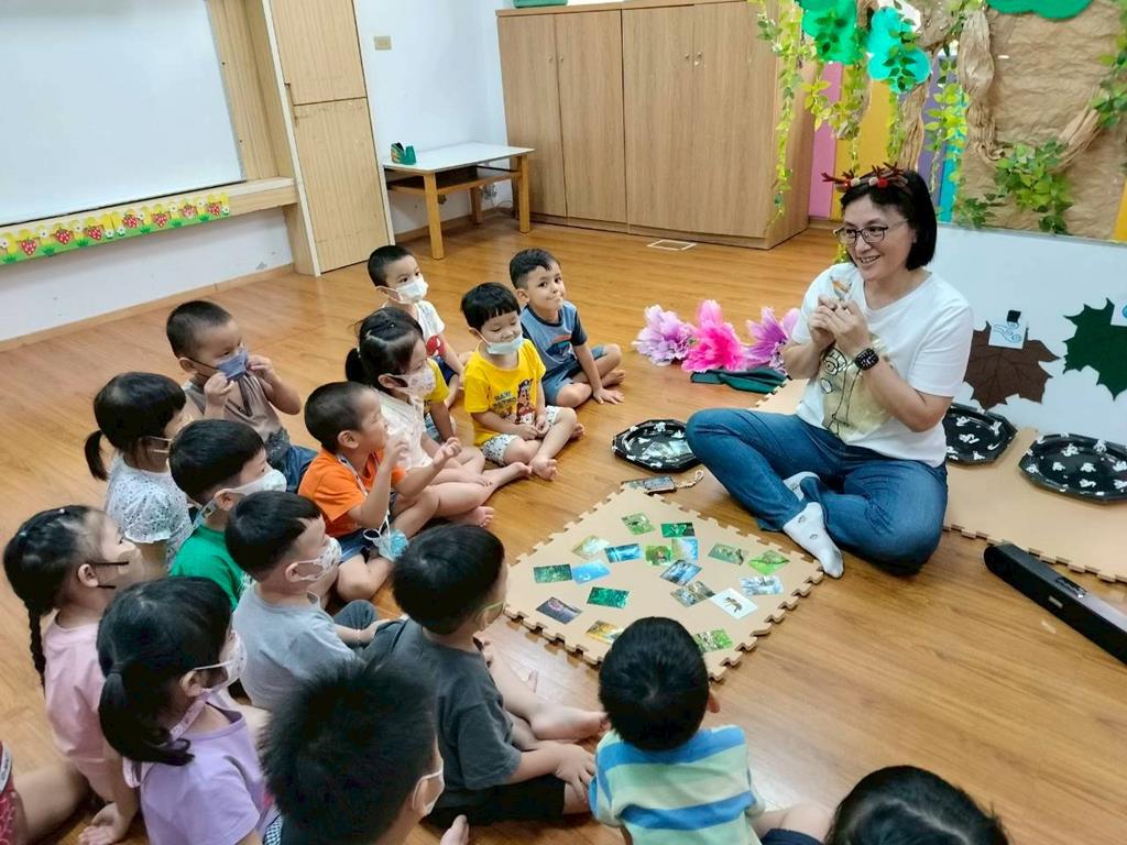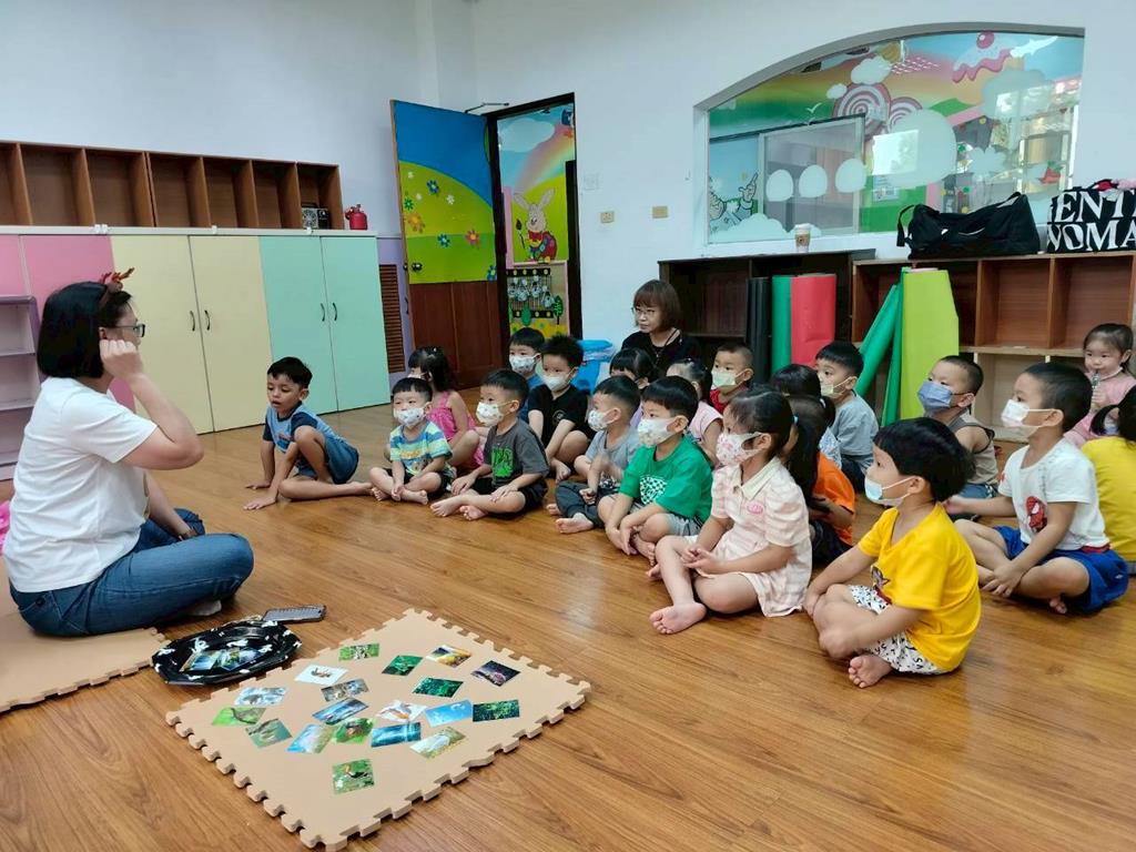 延續上個活動,今天孩子將聆聽聲音,找出對應圖片配對用身體模仿聲音完成森林交響曲