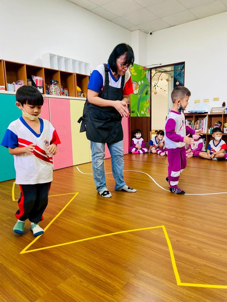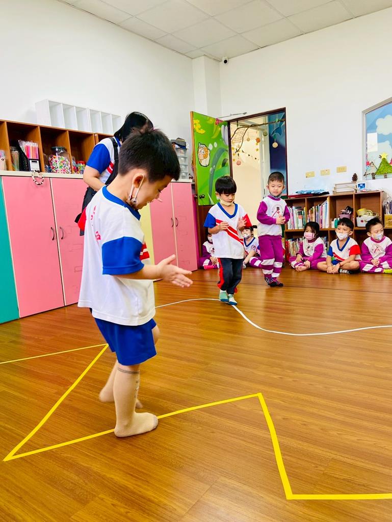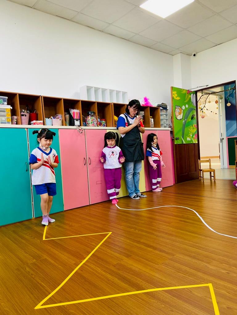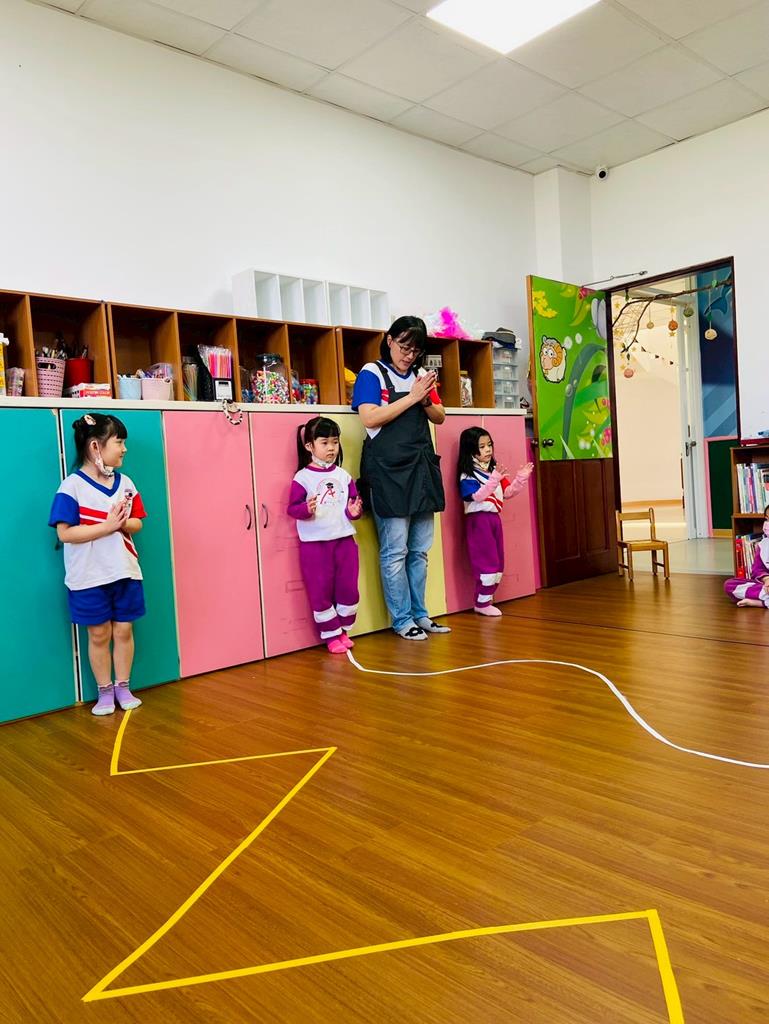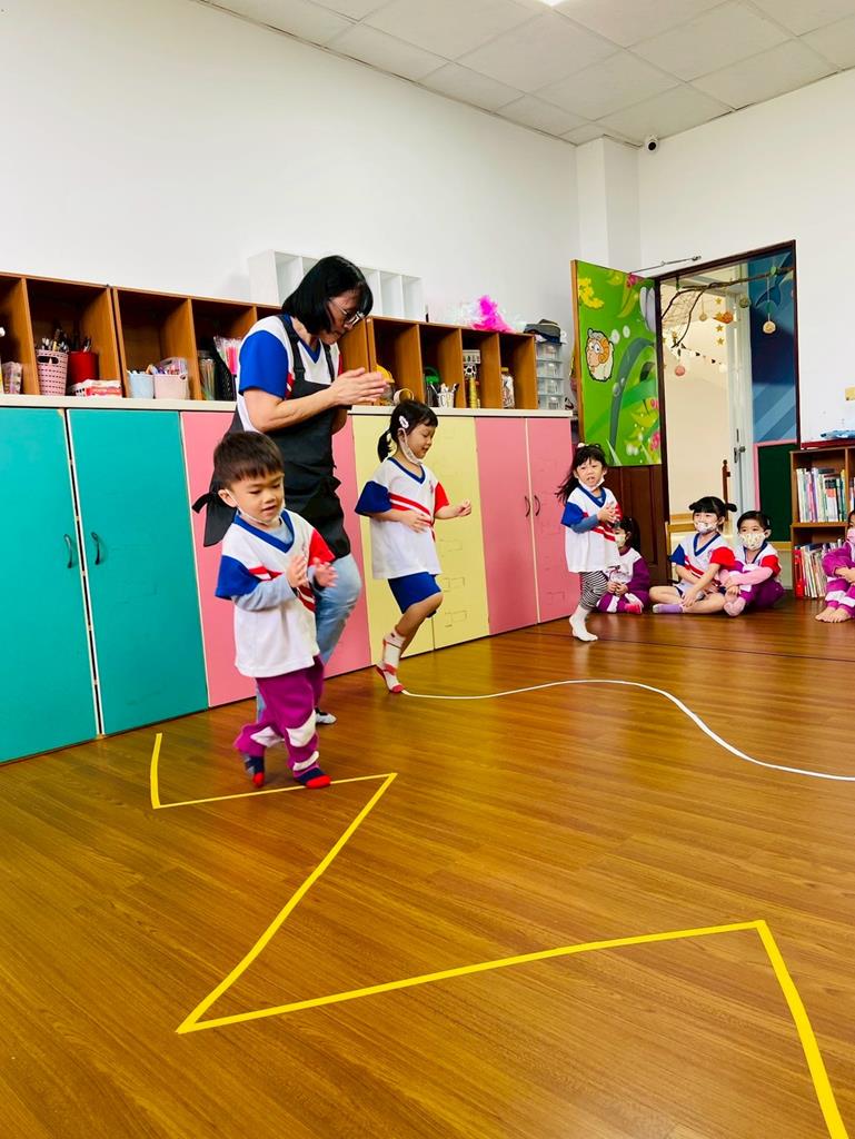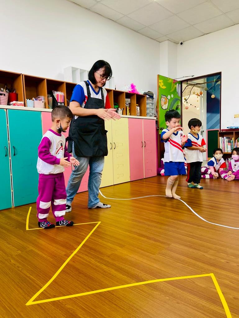 播放不同速度與強弱的音樂(如輕快、慢板、強節奏)孩子分組輪流走在不同線上,感受腳步與音樂節奏的變化。