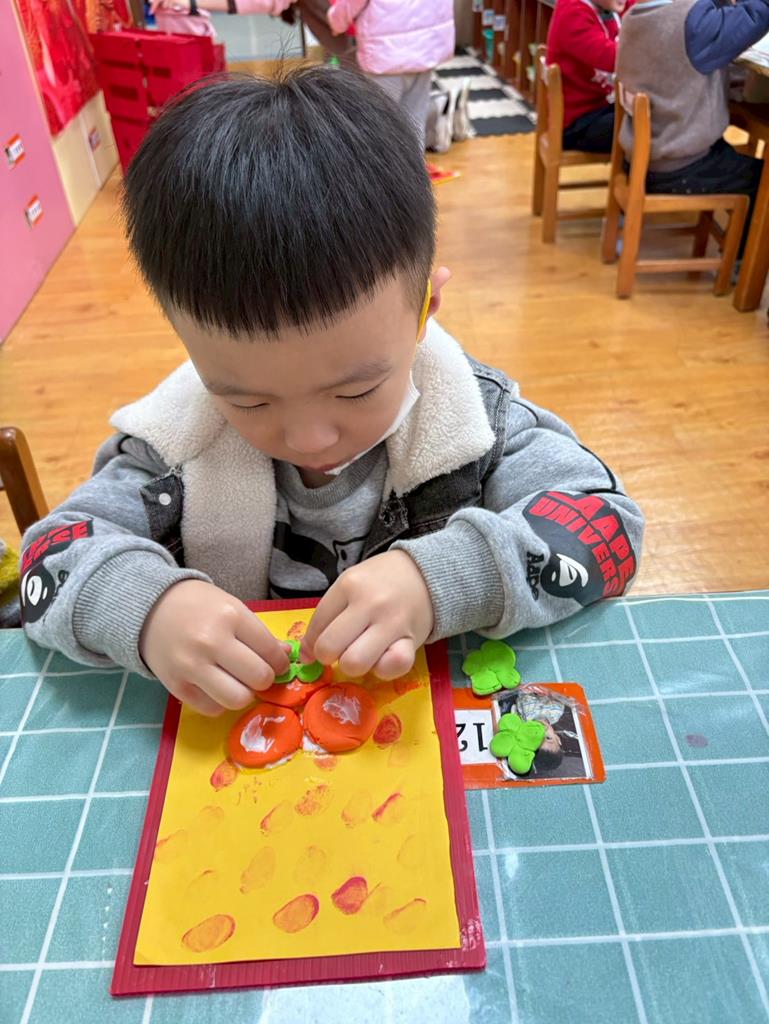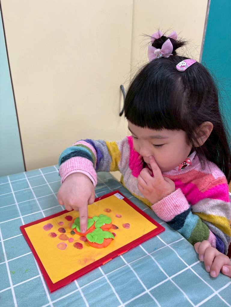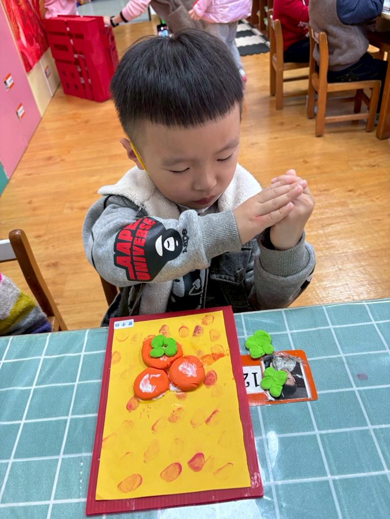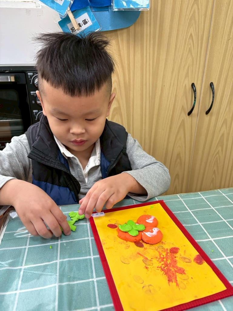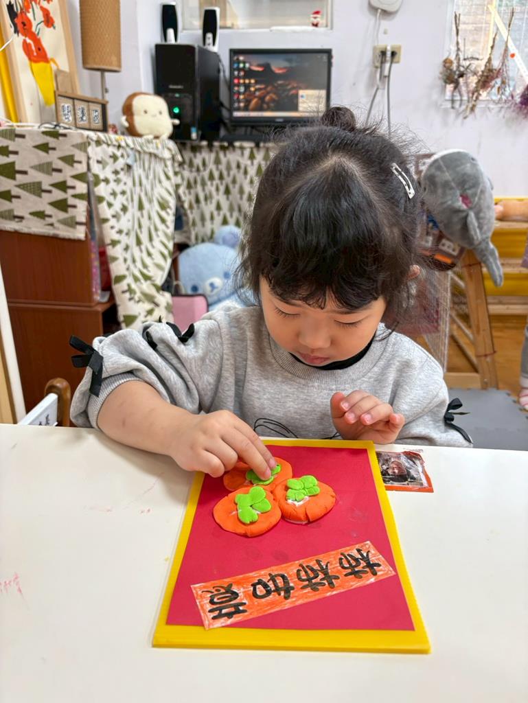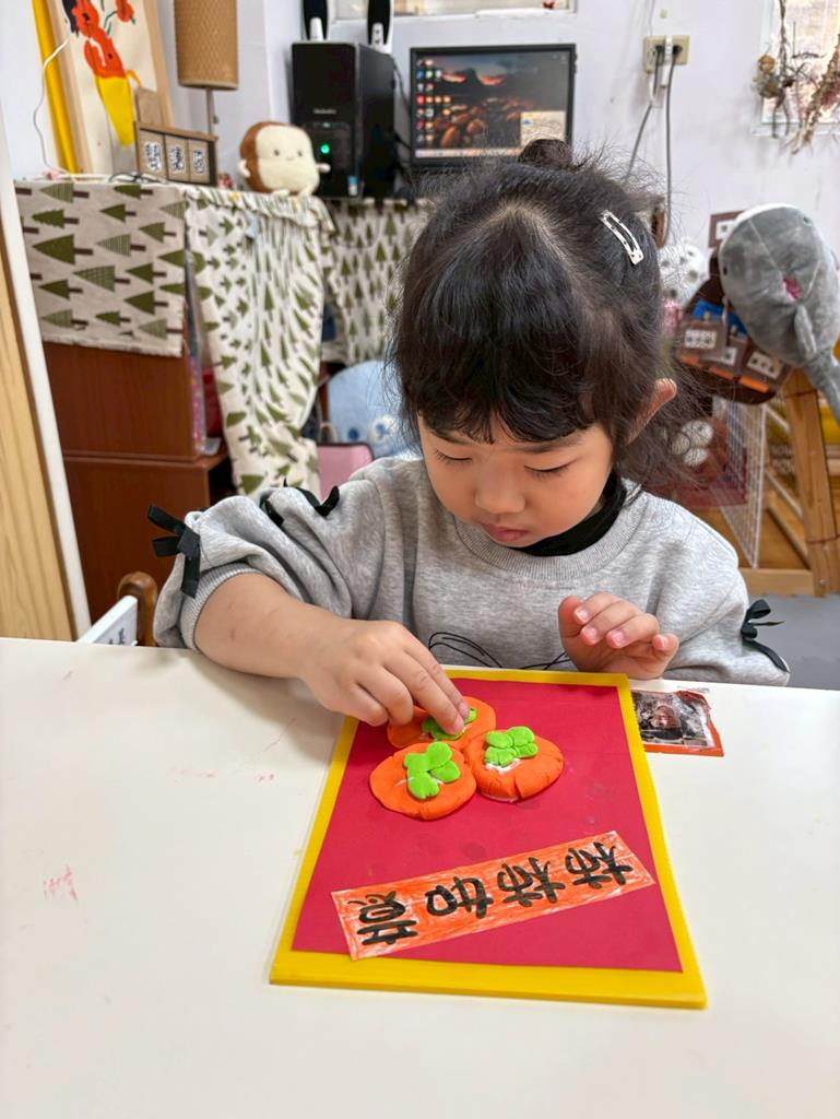 邀請幼兒運用黏土捏捏捏一顆柿子做成可愛吊飾,語意:柿柿如意