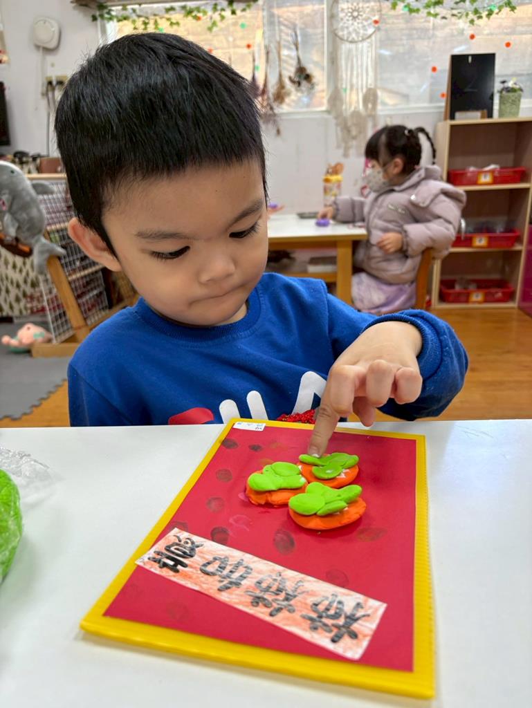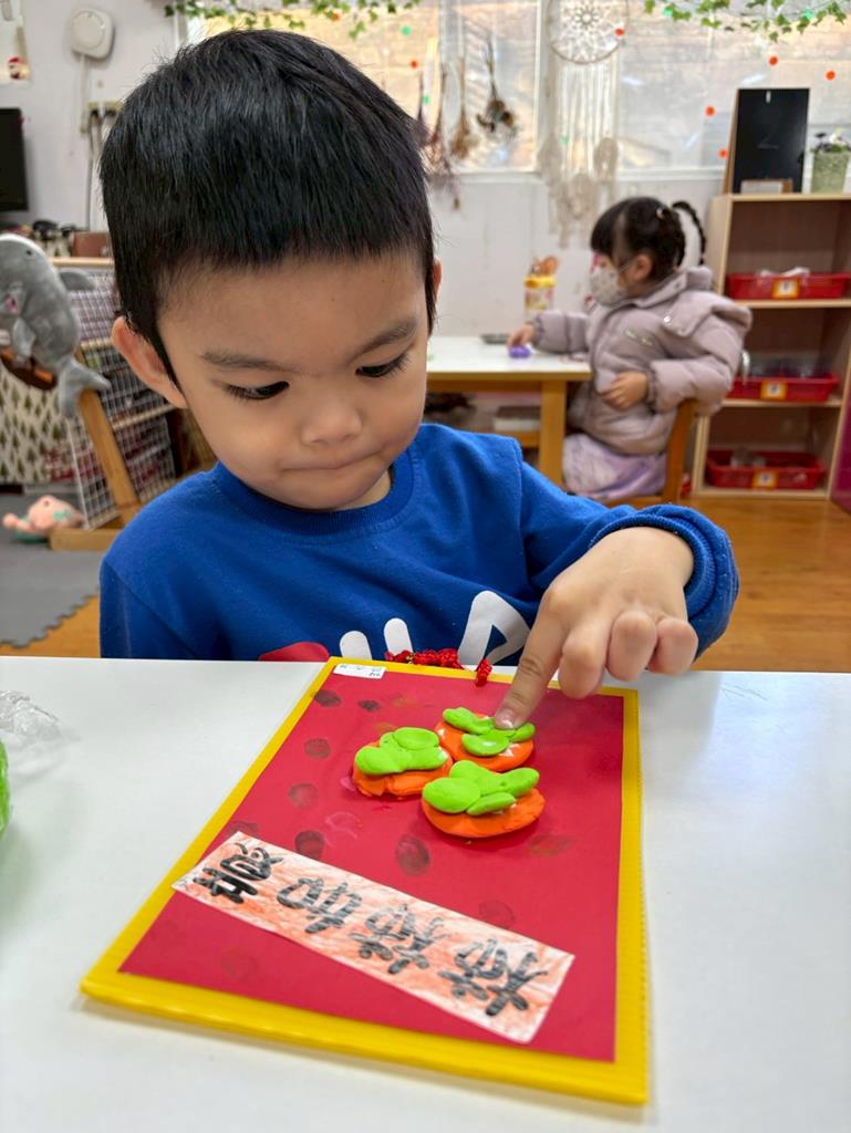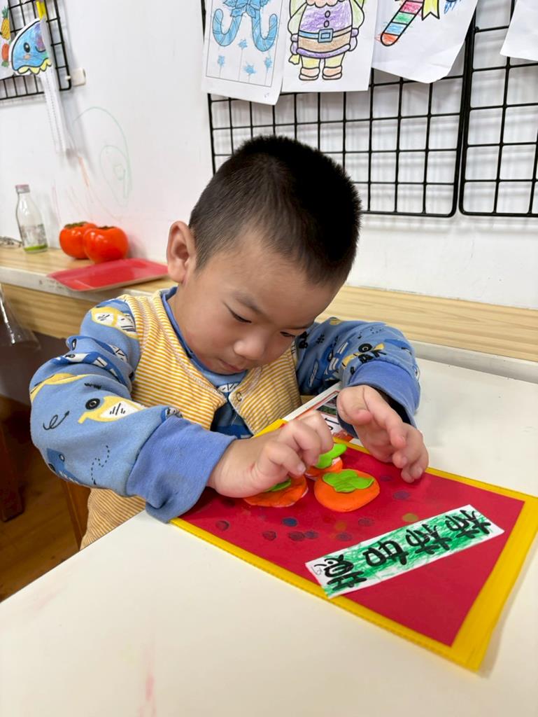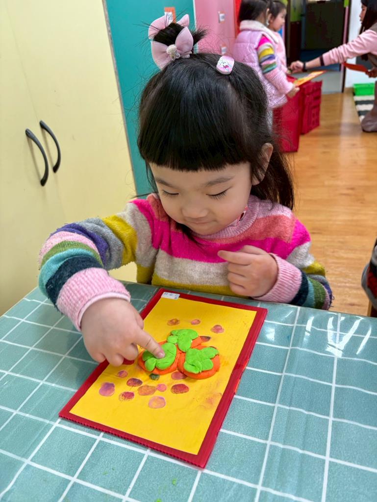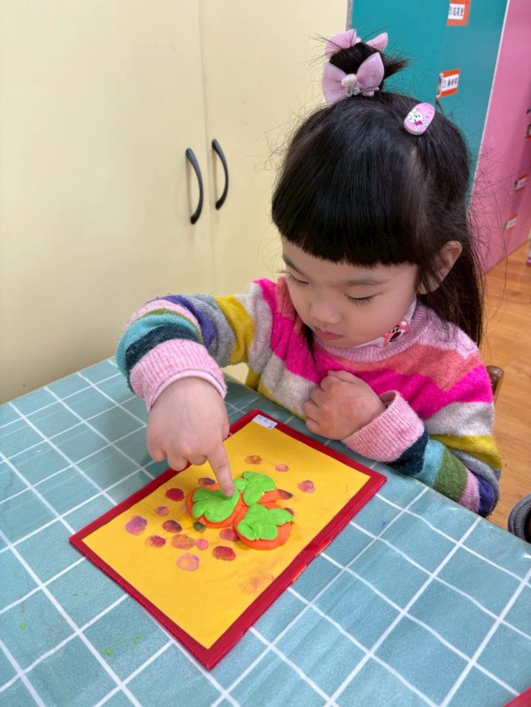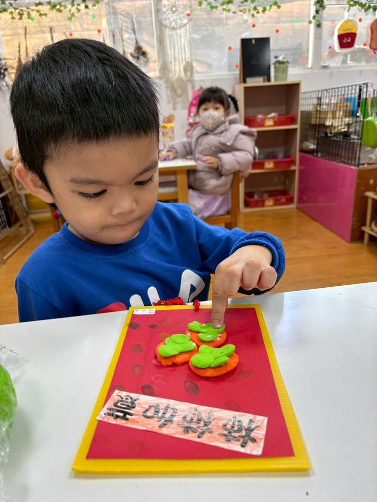 邀請幼兒運用黏土捏捏捏一顆柿子做成可愛吊飾,語意:柿柿如意