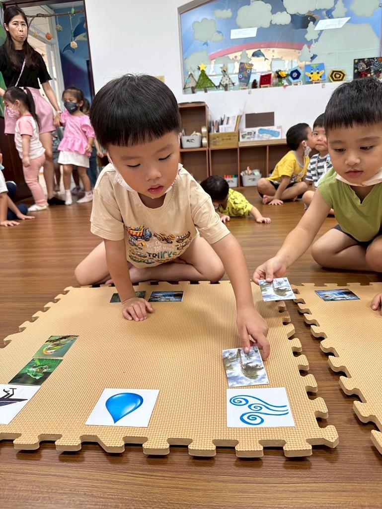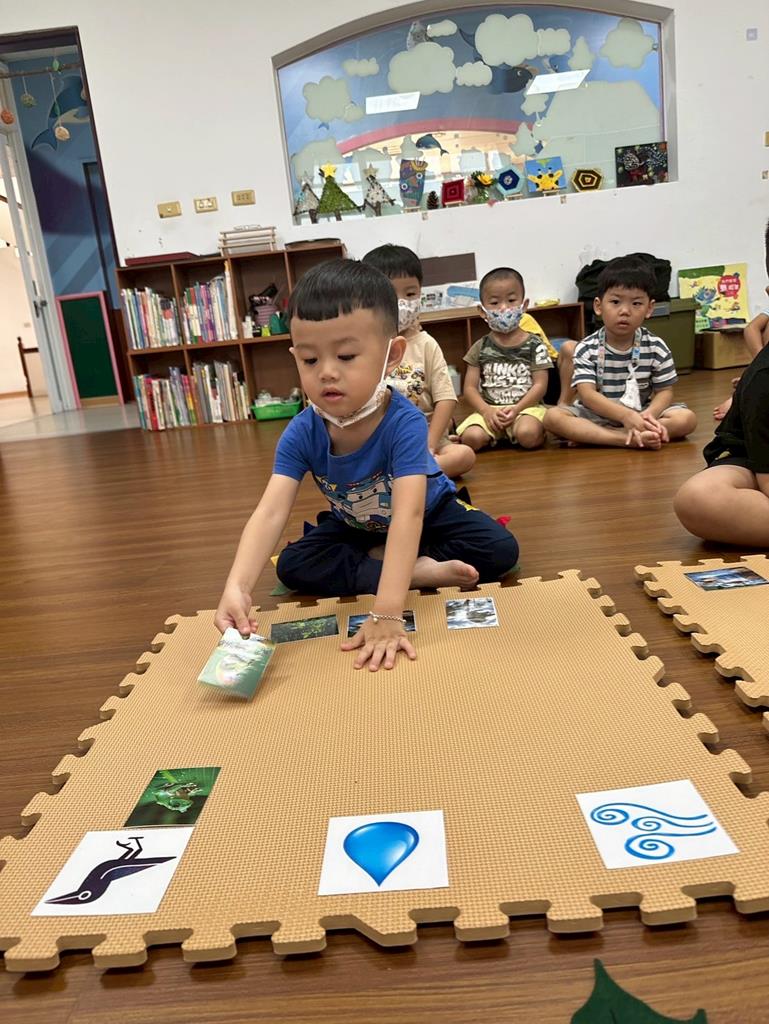 邀請幼兒聽到聲音找出對應的聲音圖卡進行歸類。