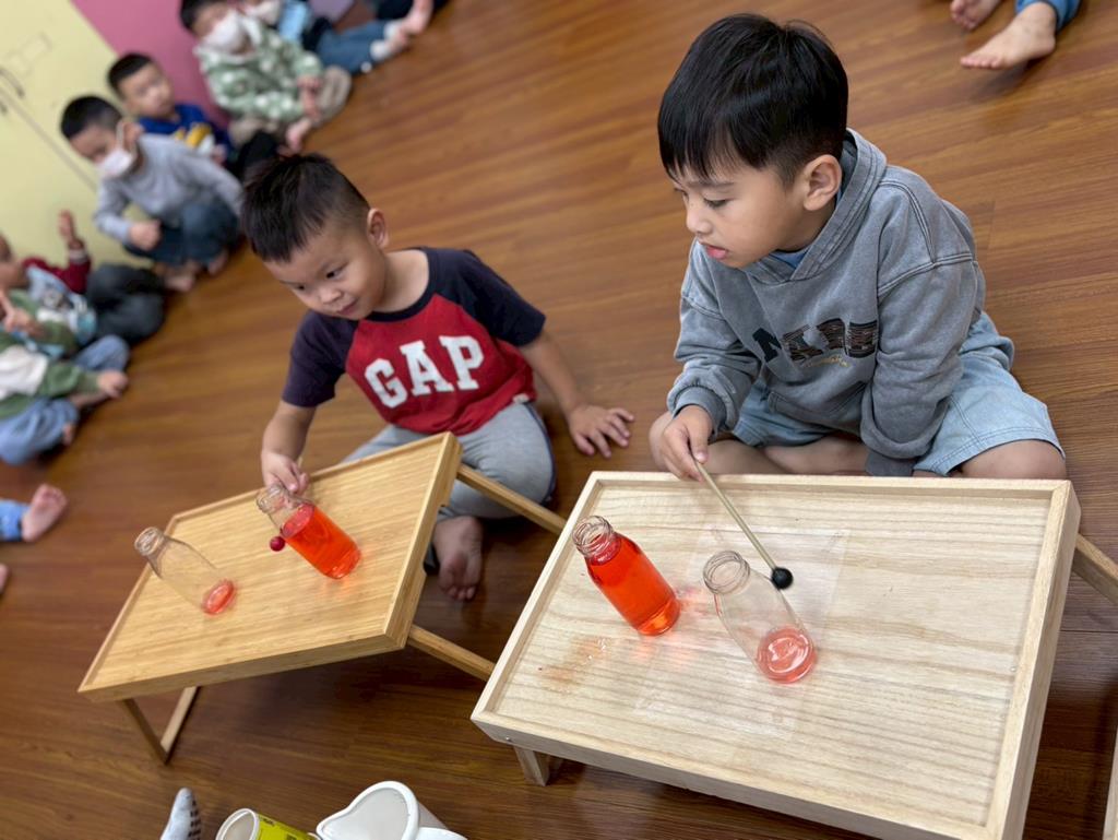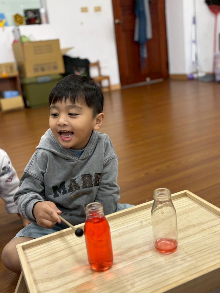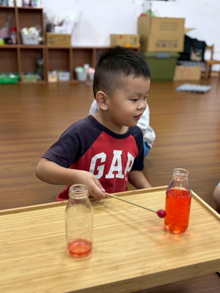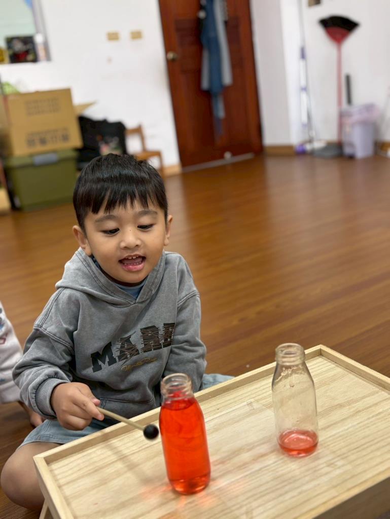 透過聽不同水量杯子聲音,進行聽力遊戲感受聲音的差異