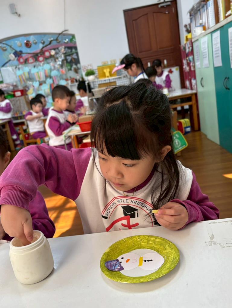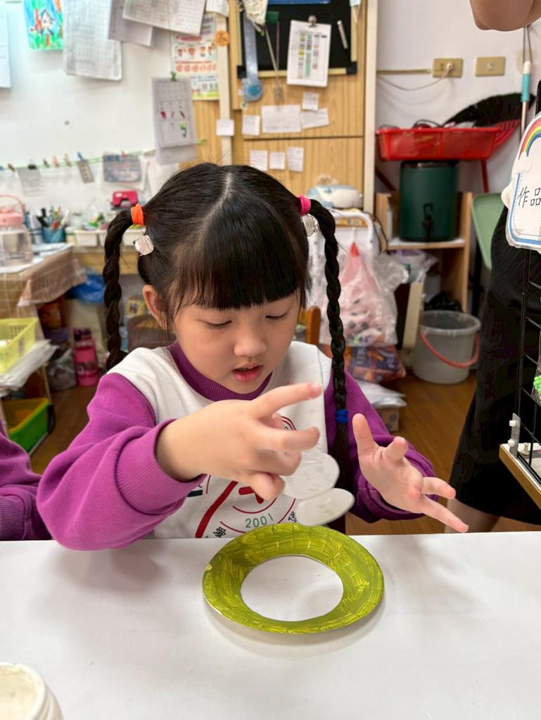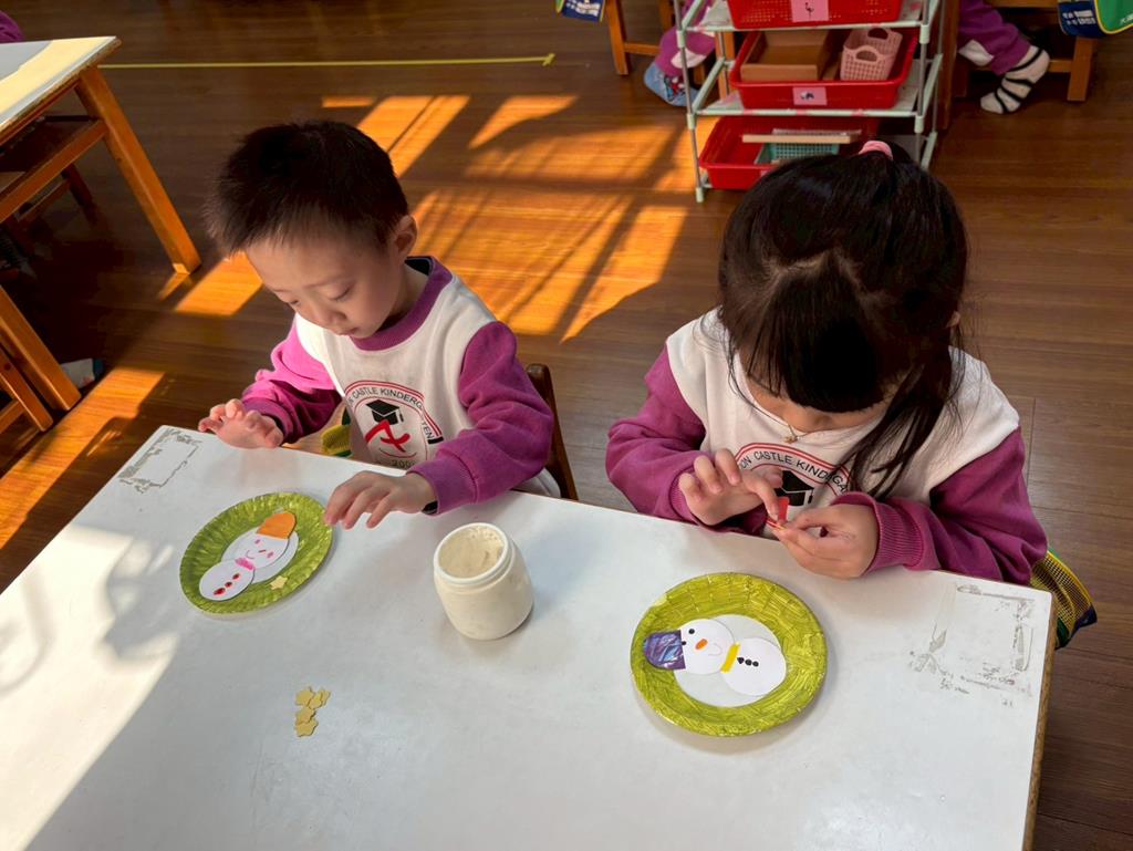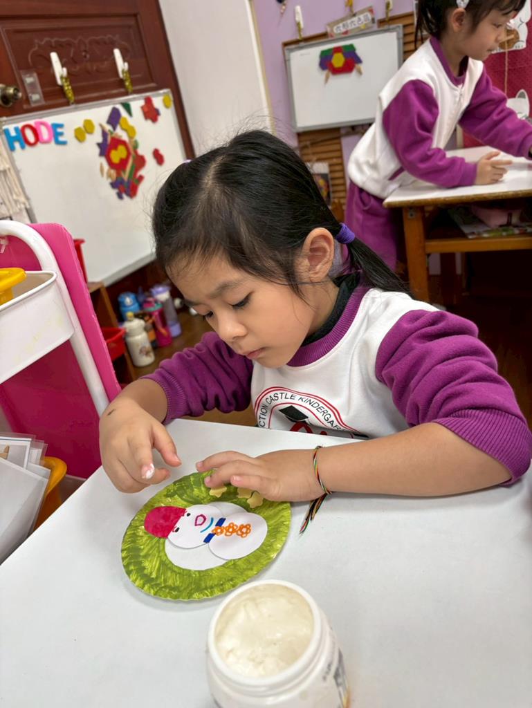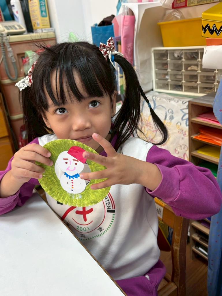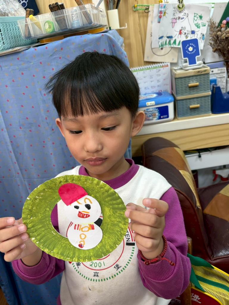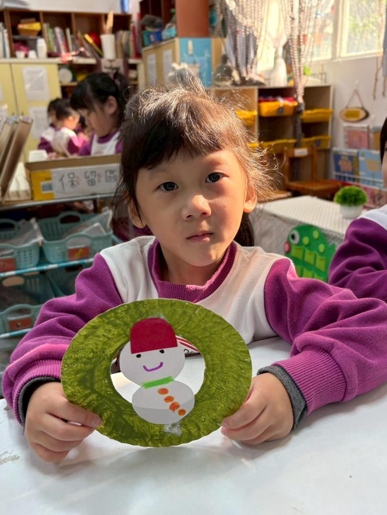 孩子們利用蛋糕紙盤進行聖誕花圈DIY並裝飾在聖誕樹上