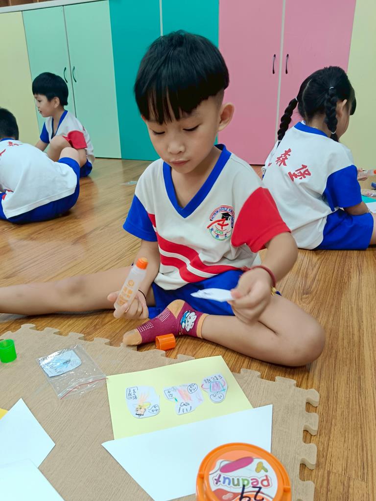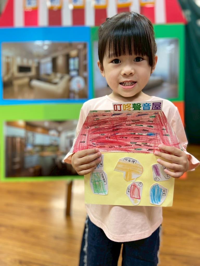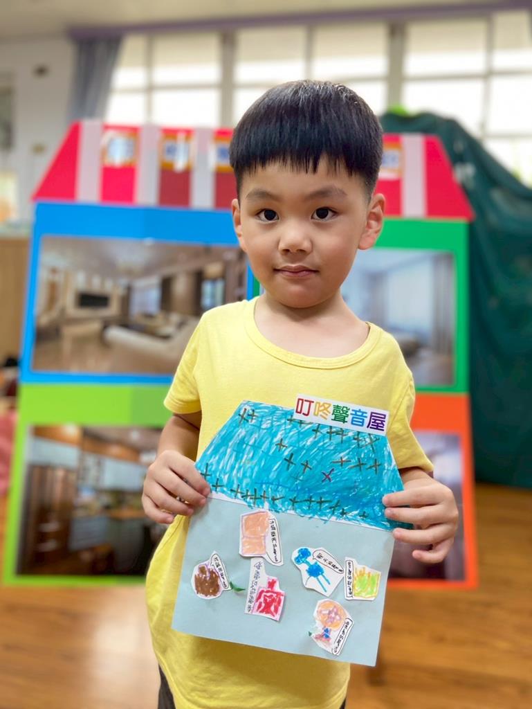 孩子將上個活動畫的聲音地圖變成一棟平面房屋,命名為-叮咚聲音屋