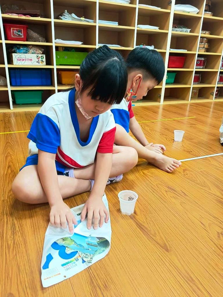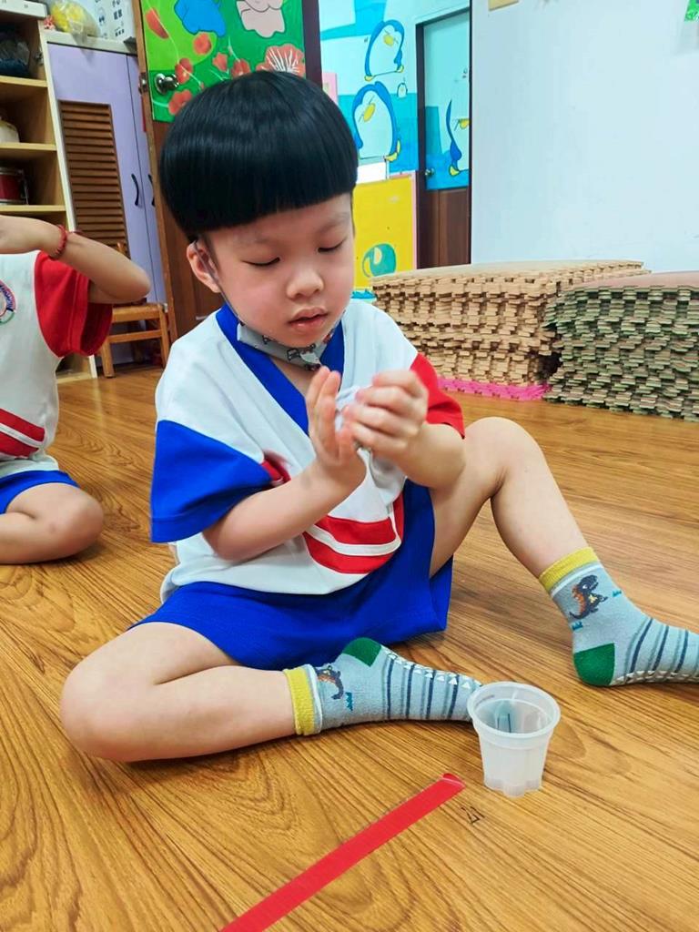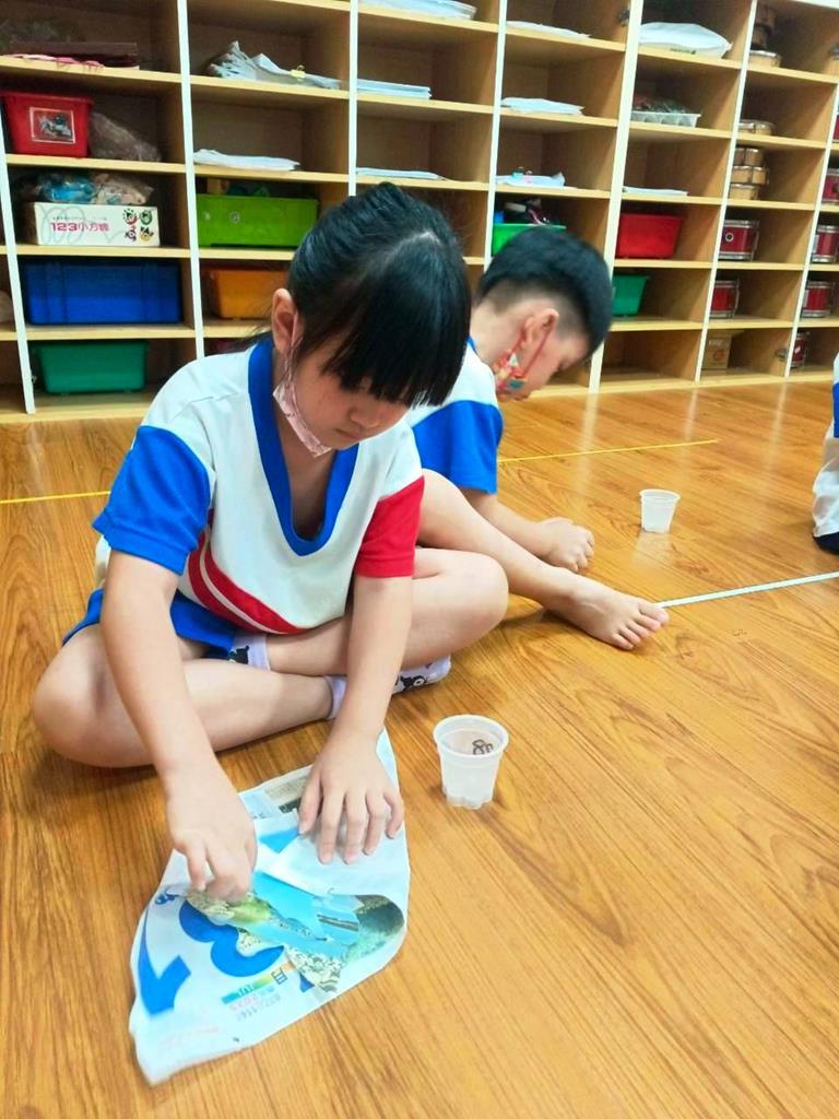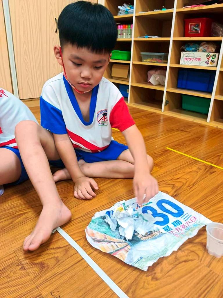 老師邀請幼兒進行撕紙遊戲,並自己數一數誰的比較多片呢?