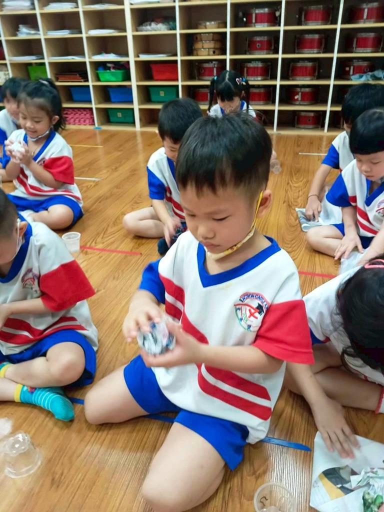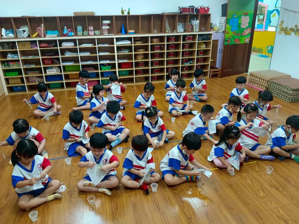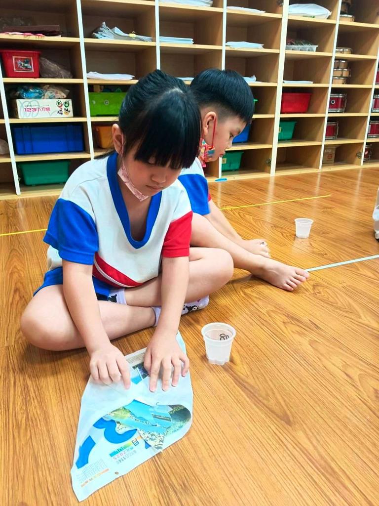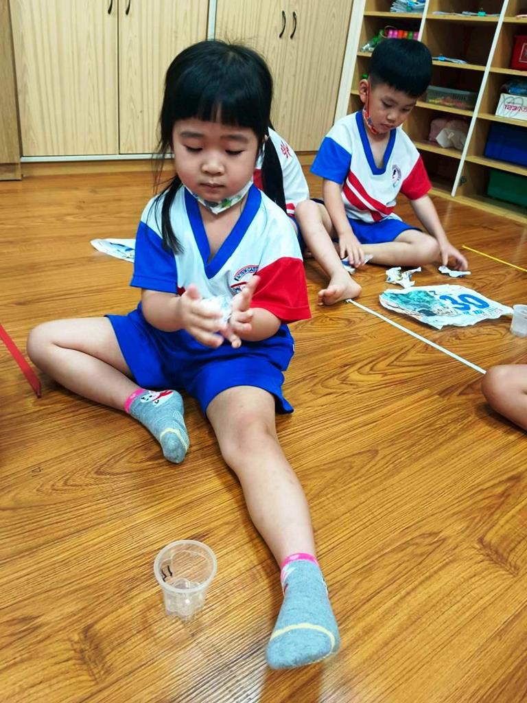 老師邀請幼兒進行撕紙遊戲,並自己數一數誰的比較多片呢?