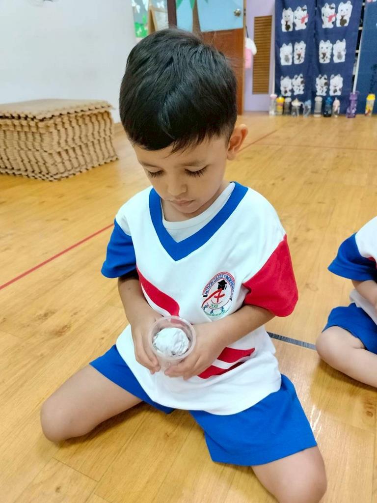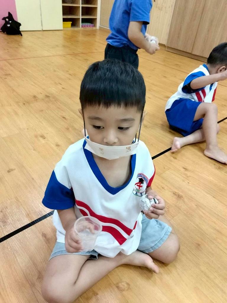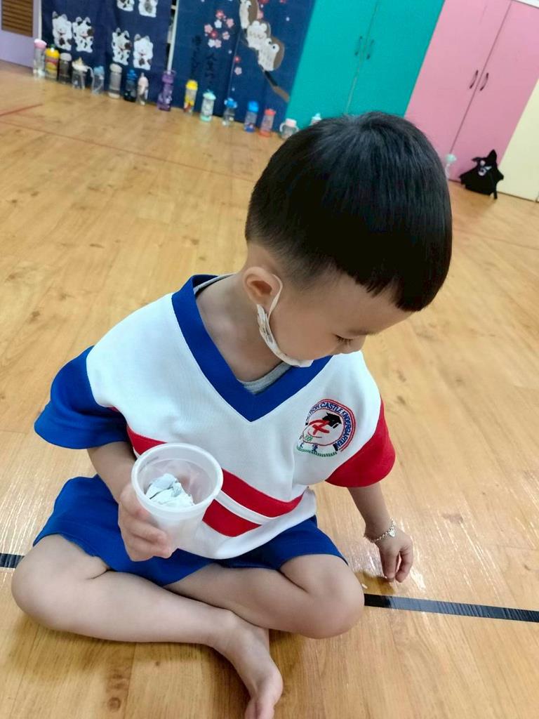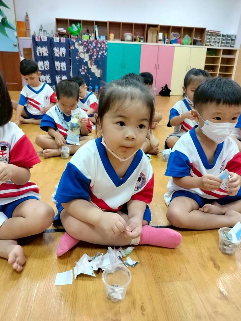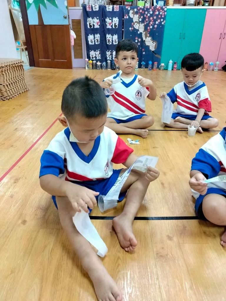 老師拿一張紙撕給幼兒聽,並說撕撕撕撕破的ㄙ,邀請幼兒拿一張紙跟著老師一起撕