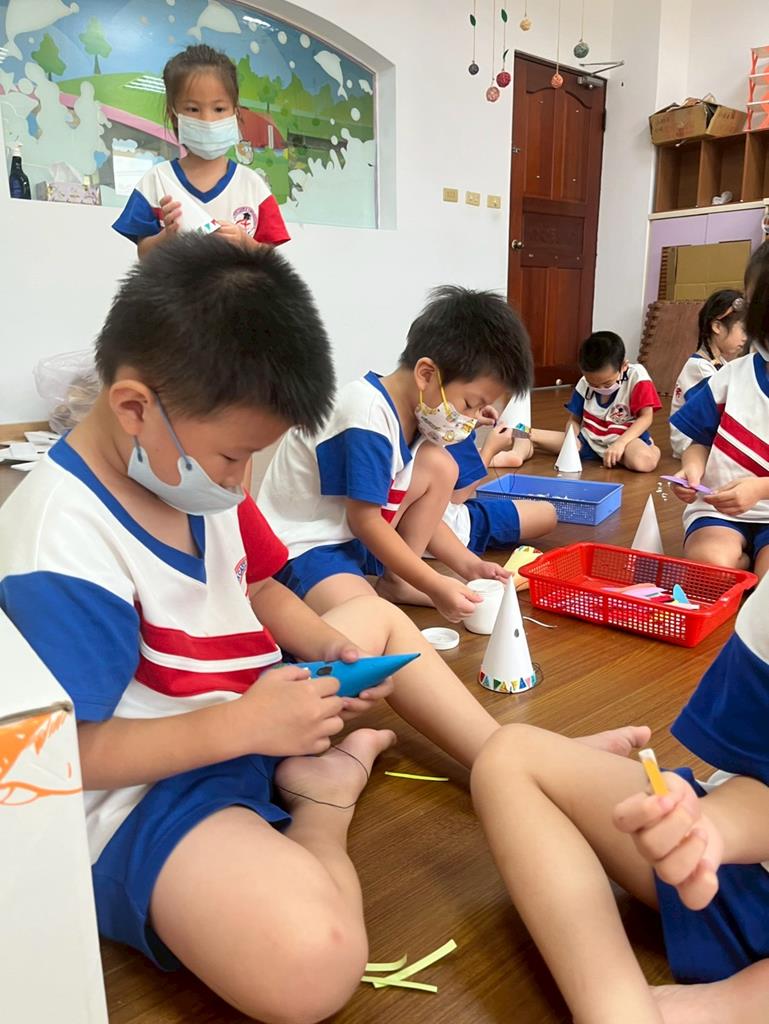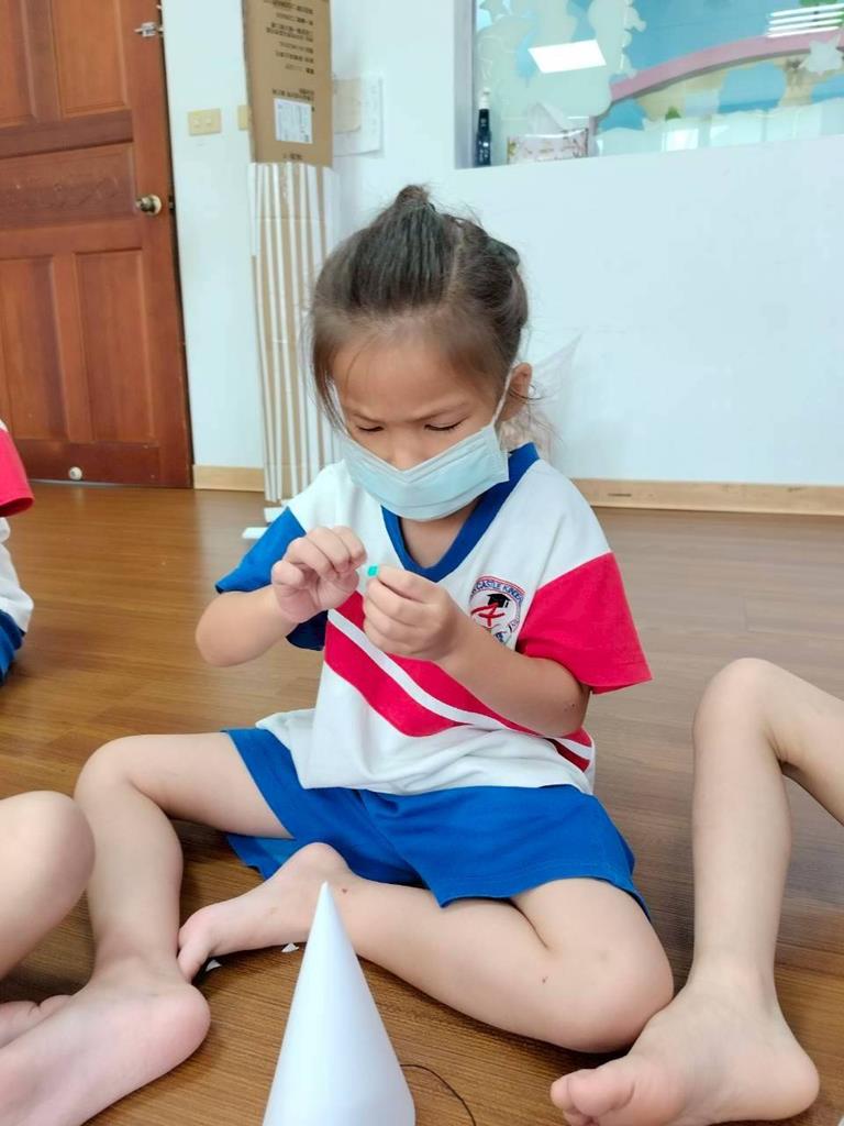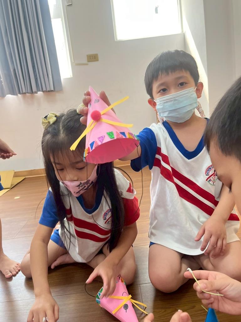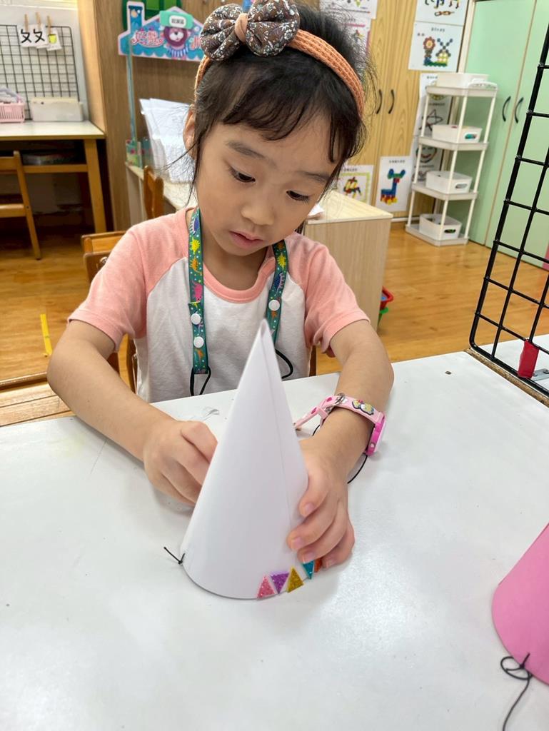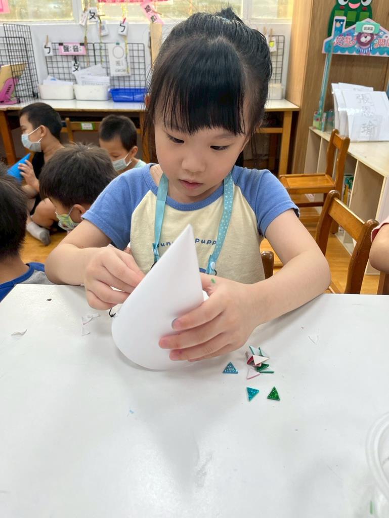 今天孩子動手製作玉兔頭飾,增進手眼協調與創意表達能力