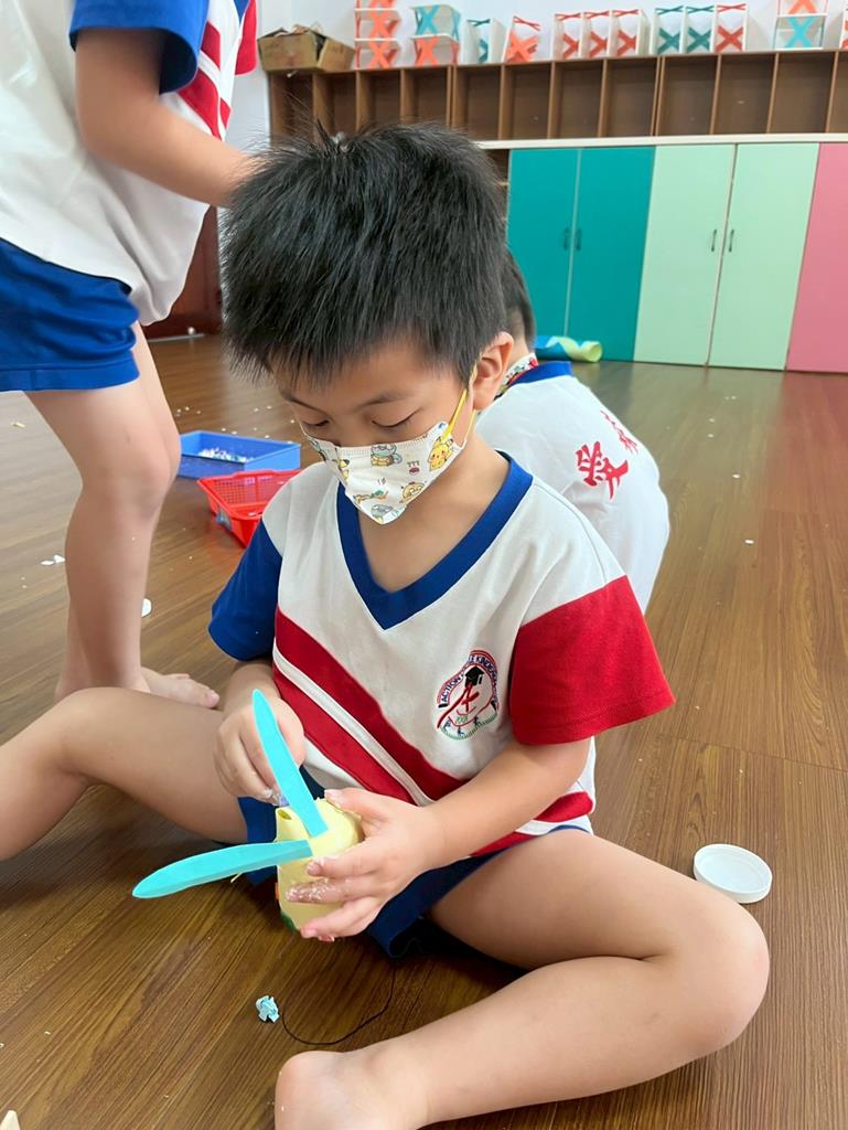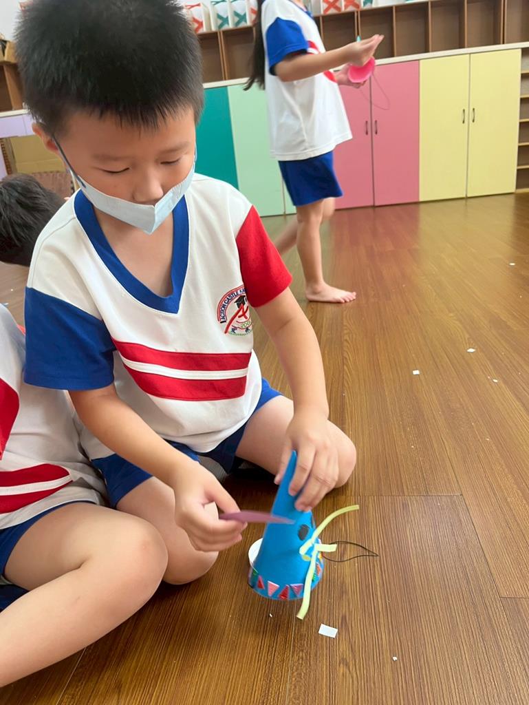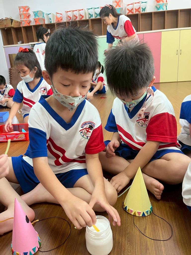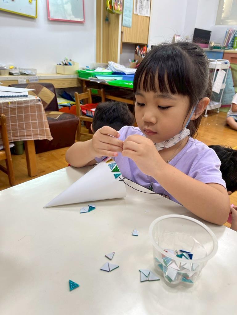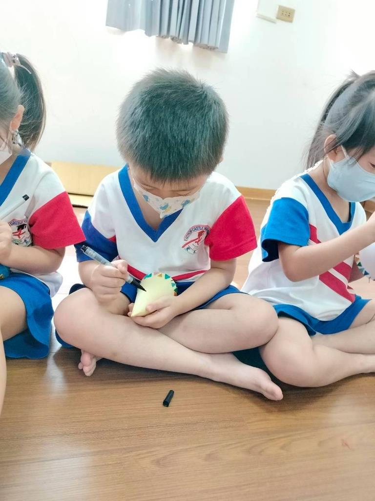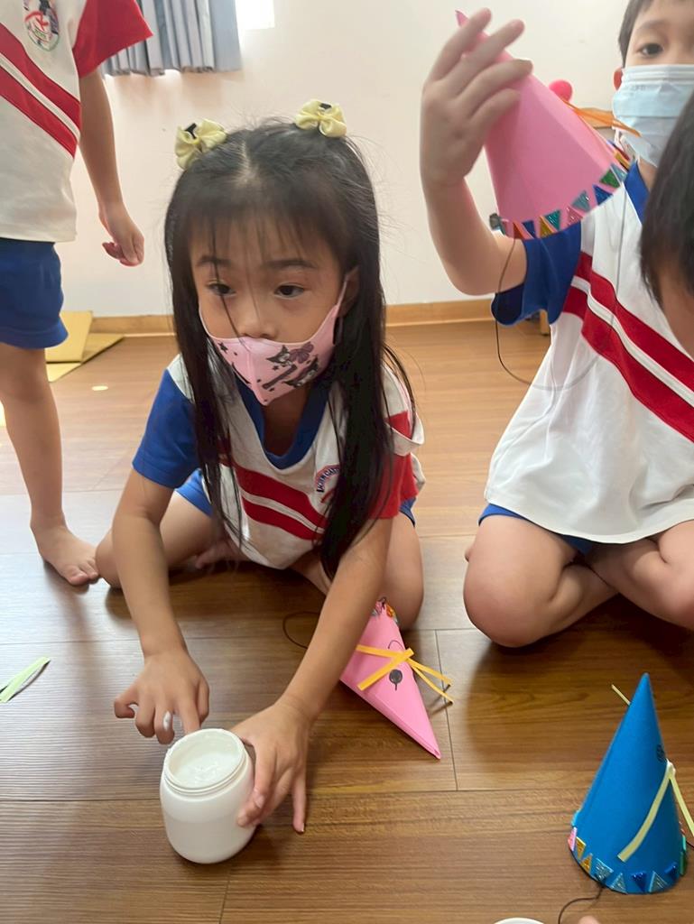今天孩子動手製作玉兔頭飾,增進手眼協調與創意表達能力