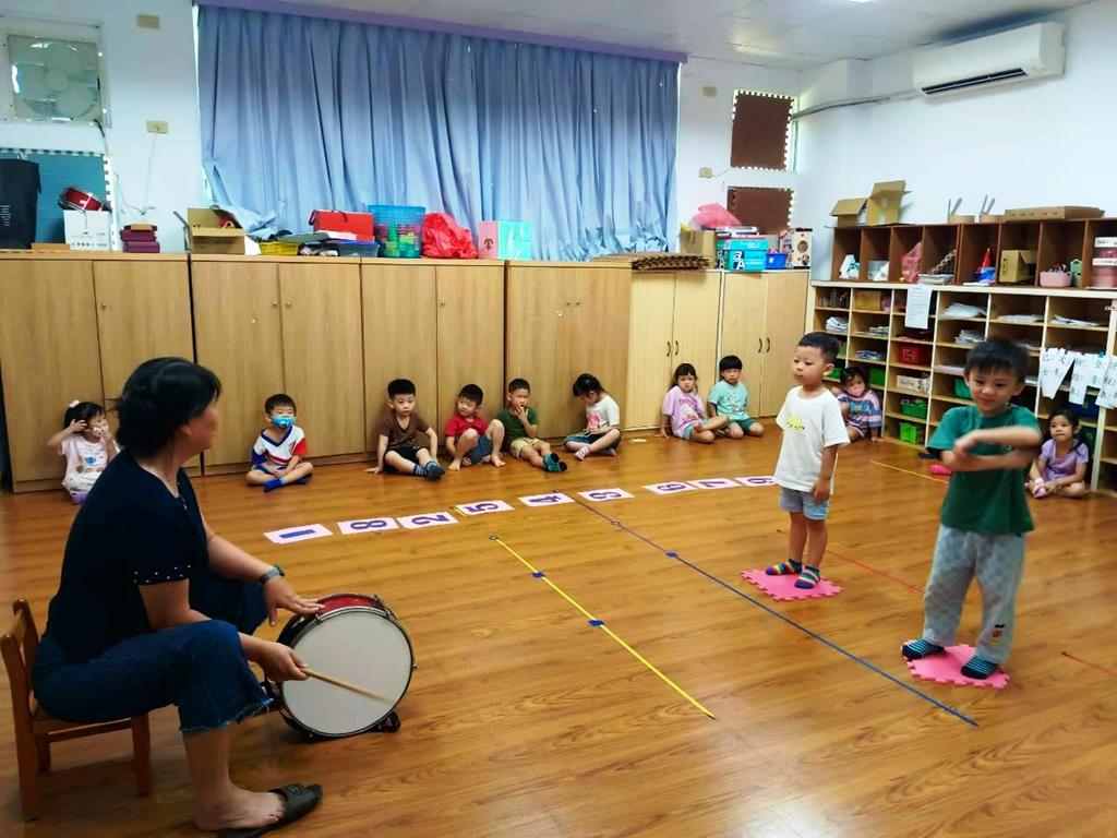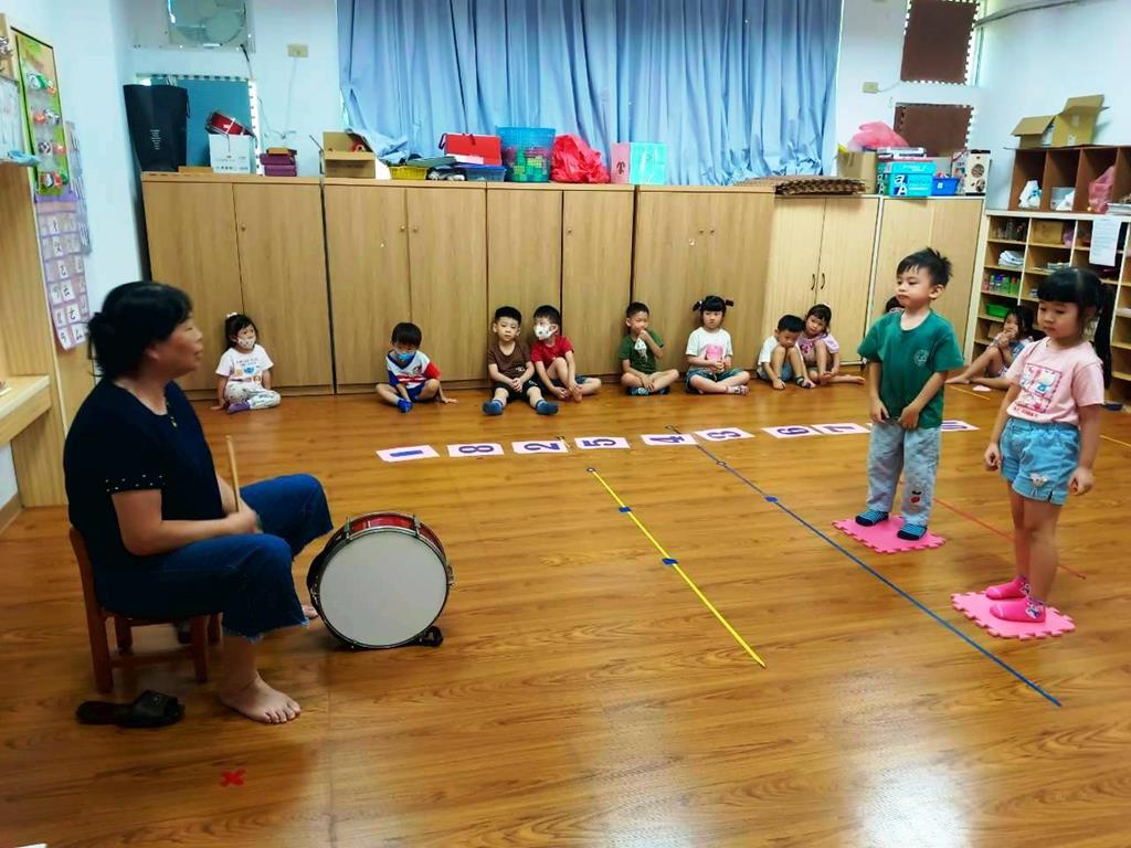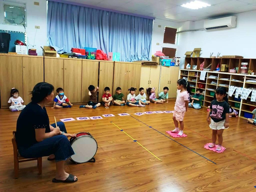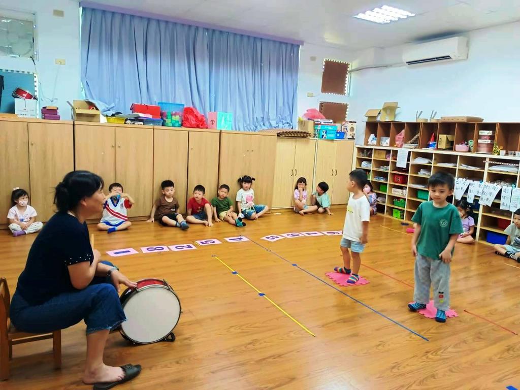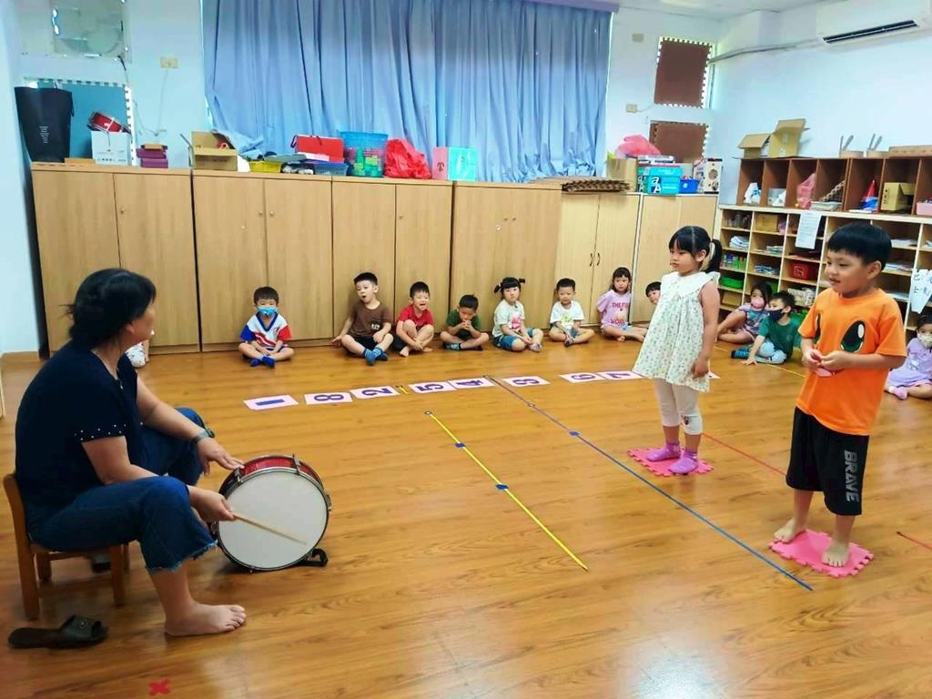 老師敲鼓,幼兒仔細聽聲音次數,搶拿對應的數字卡。