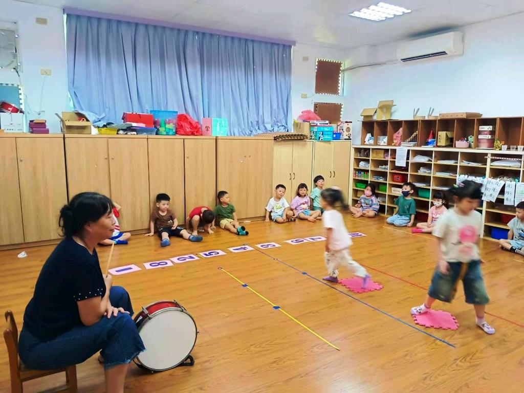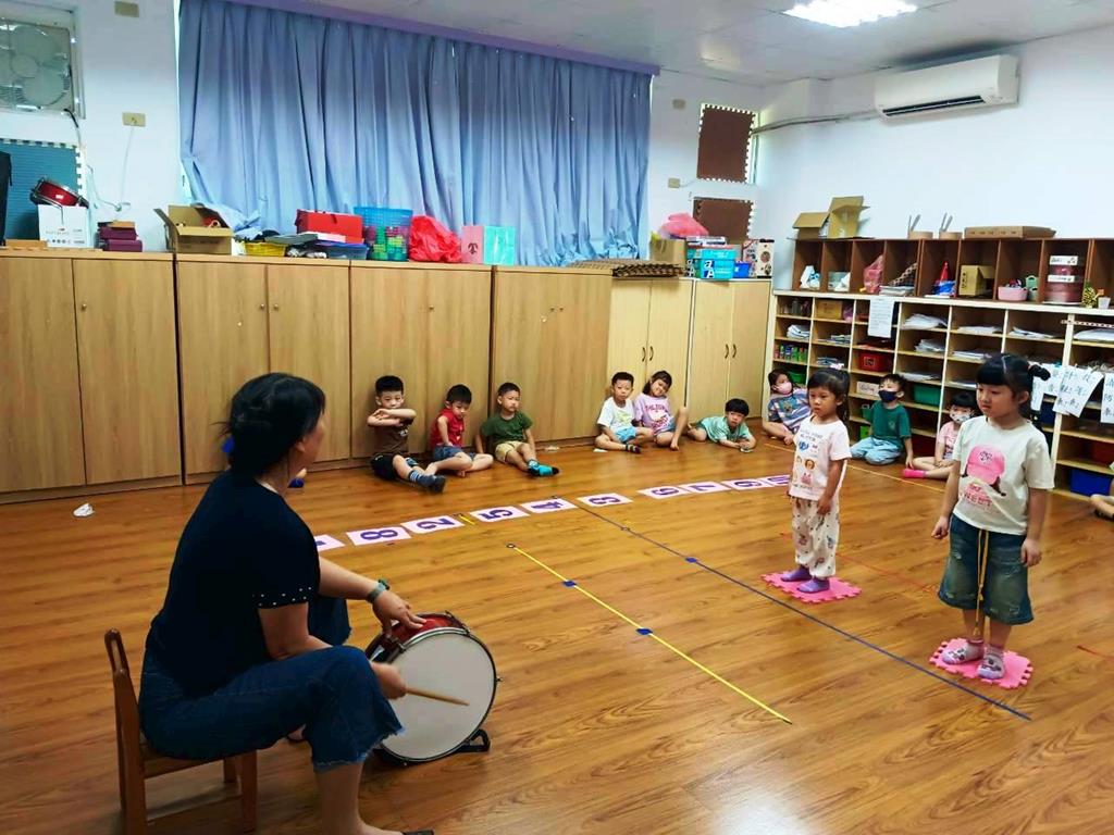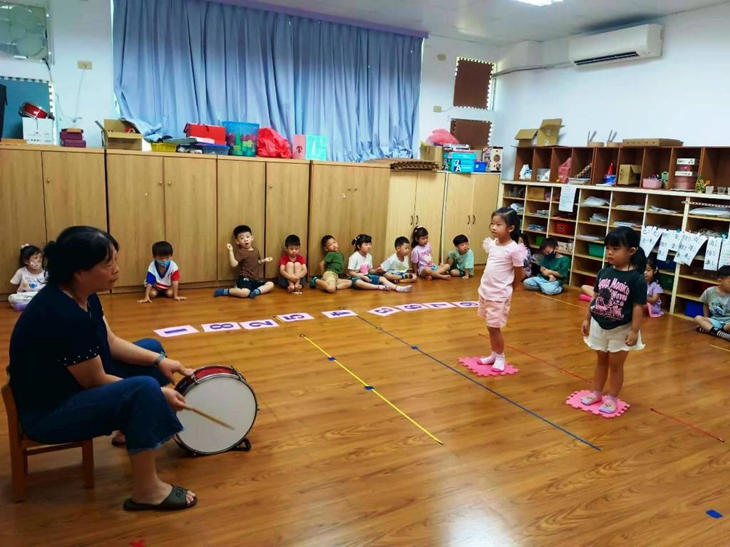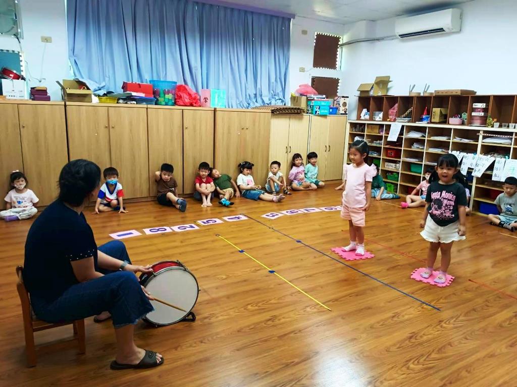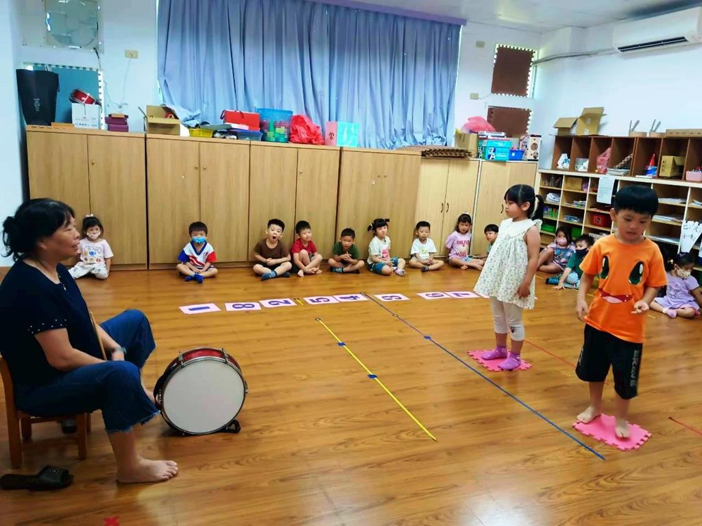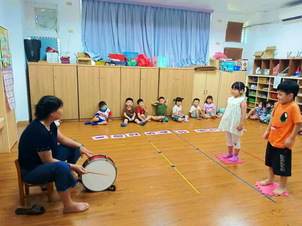 老師敲鼓,幼兒仔細聽聲音次數,搶拿對應的數字卡。