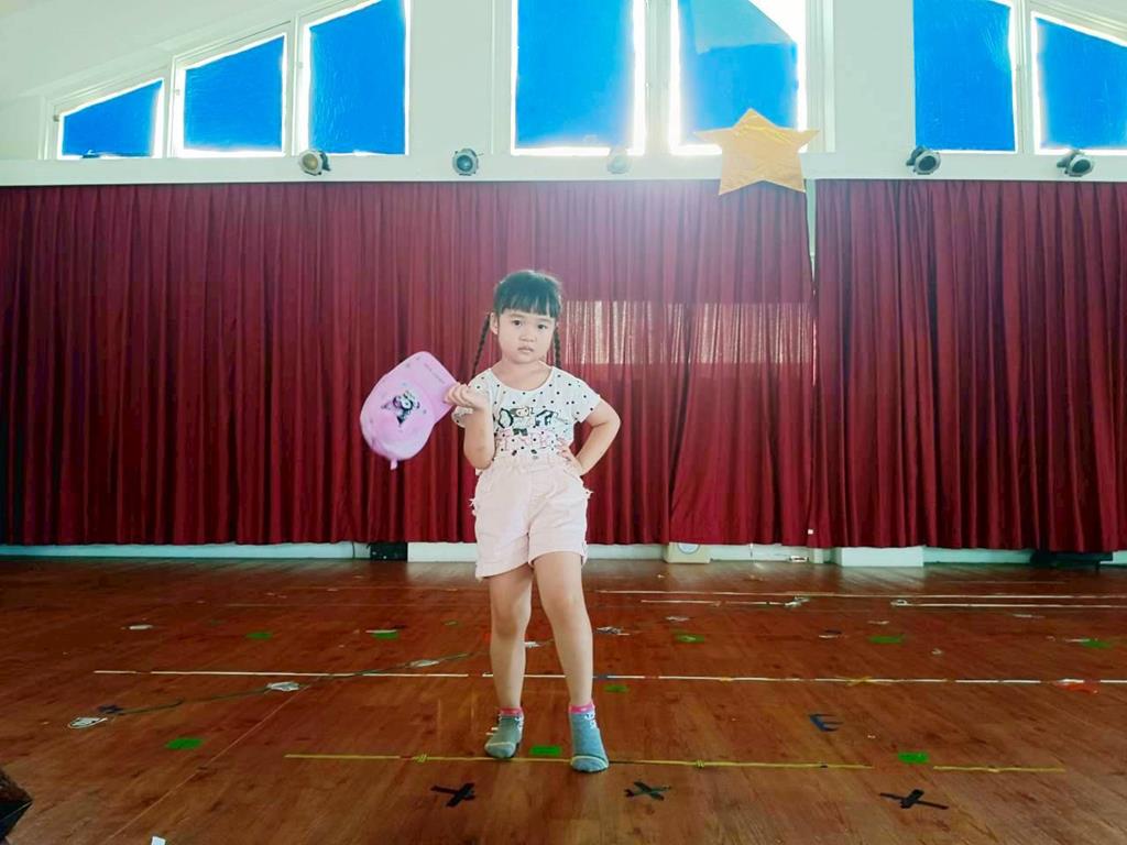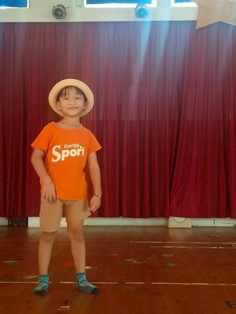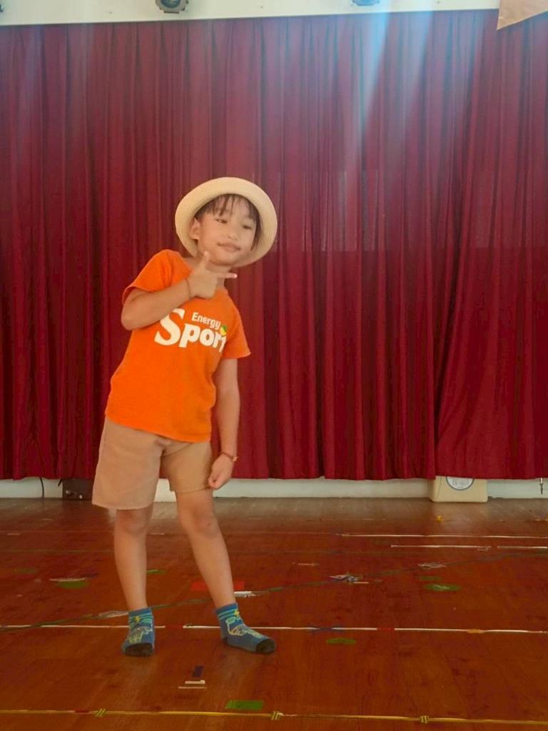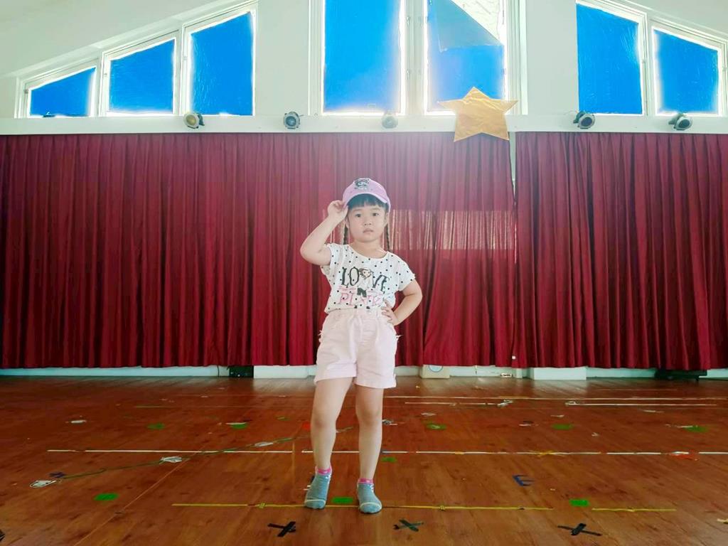 幼兒自行選擇不同的帽子,配合音樂進行走秀