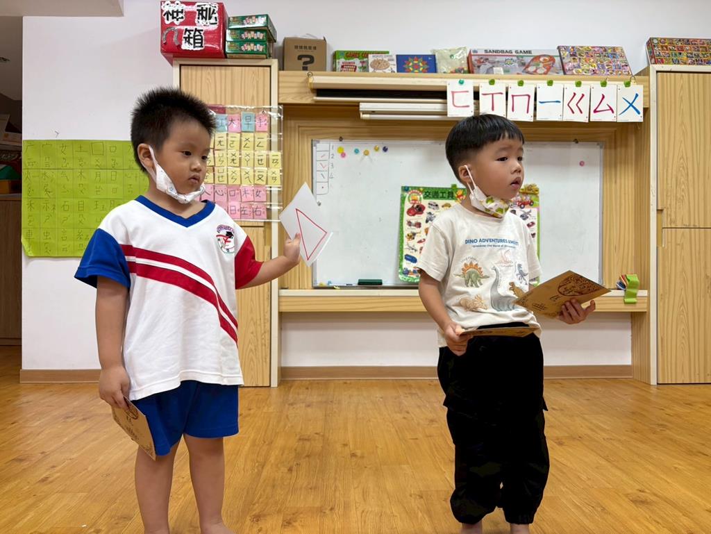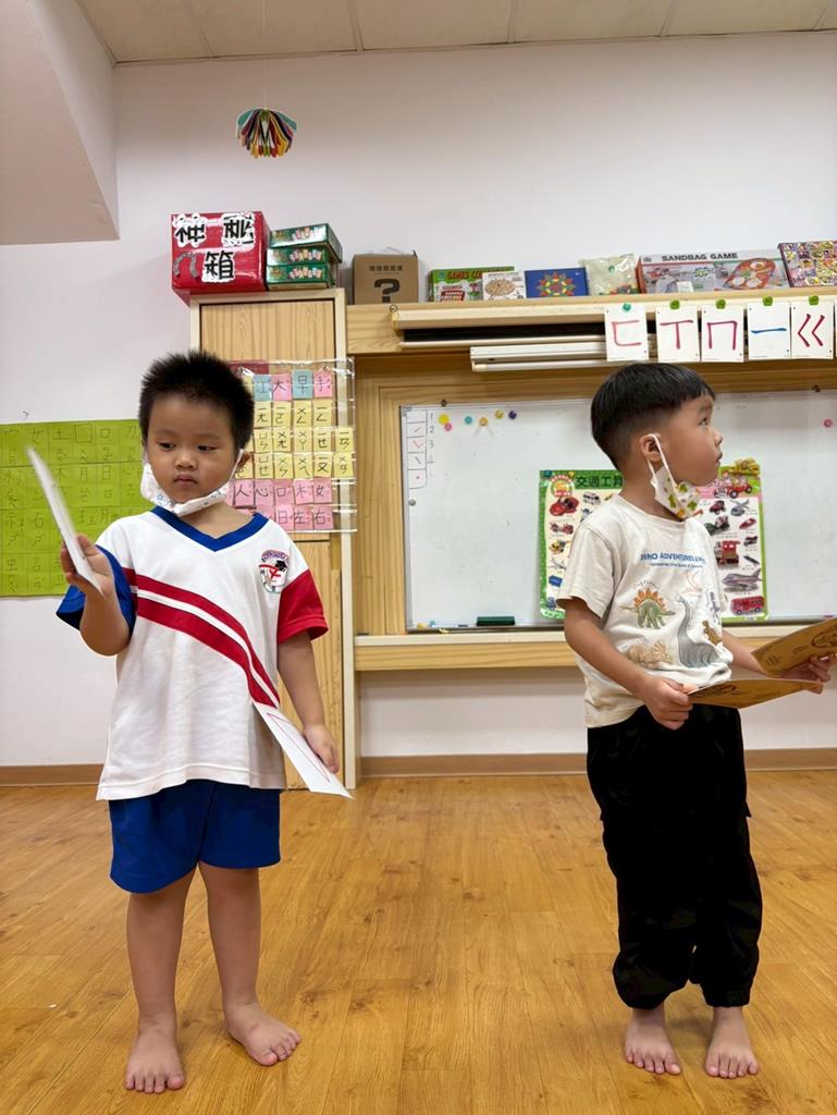 老師指定交通工具邀請幼兒聽聽聲音舉牌辨別對或錯。