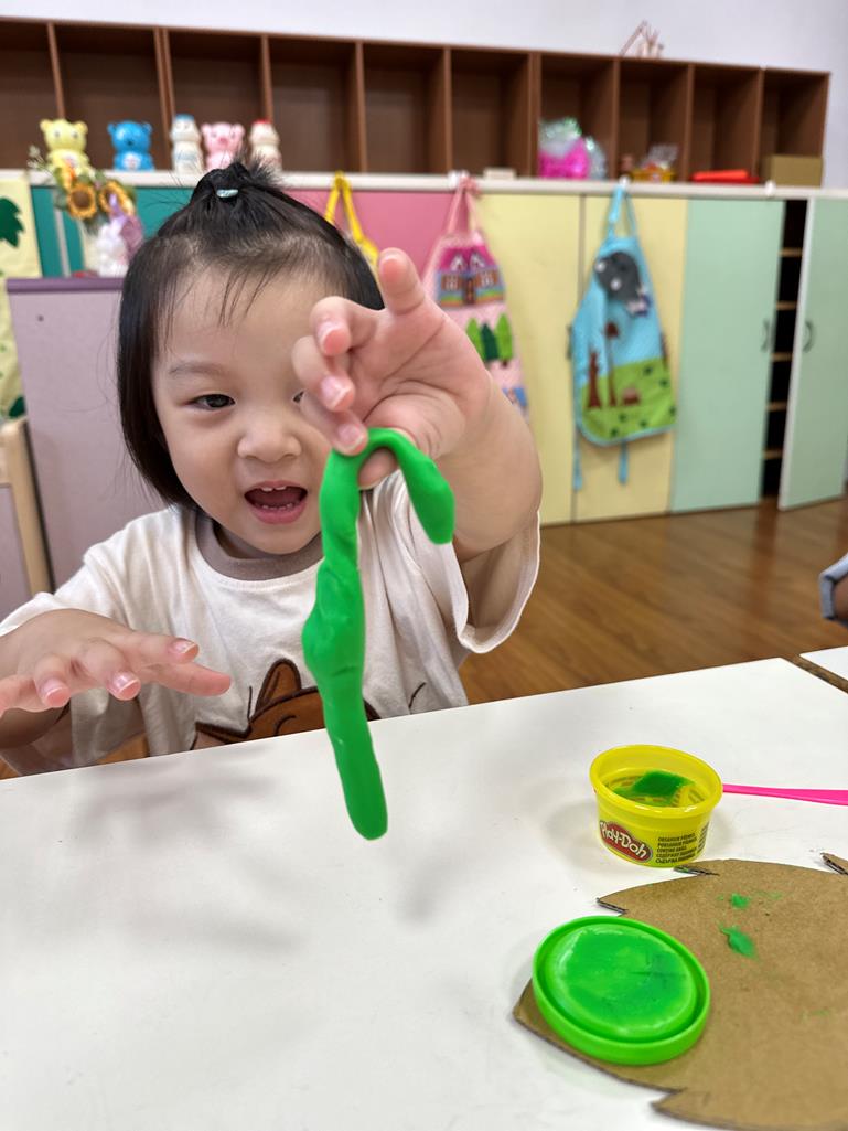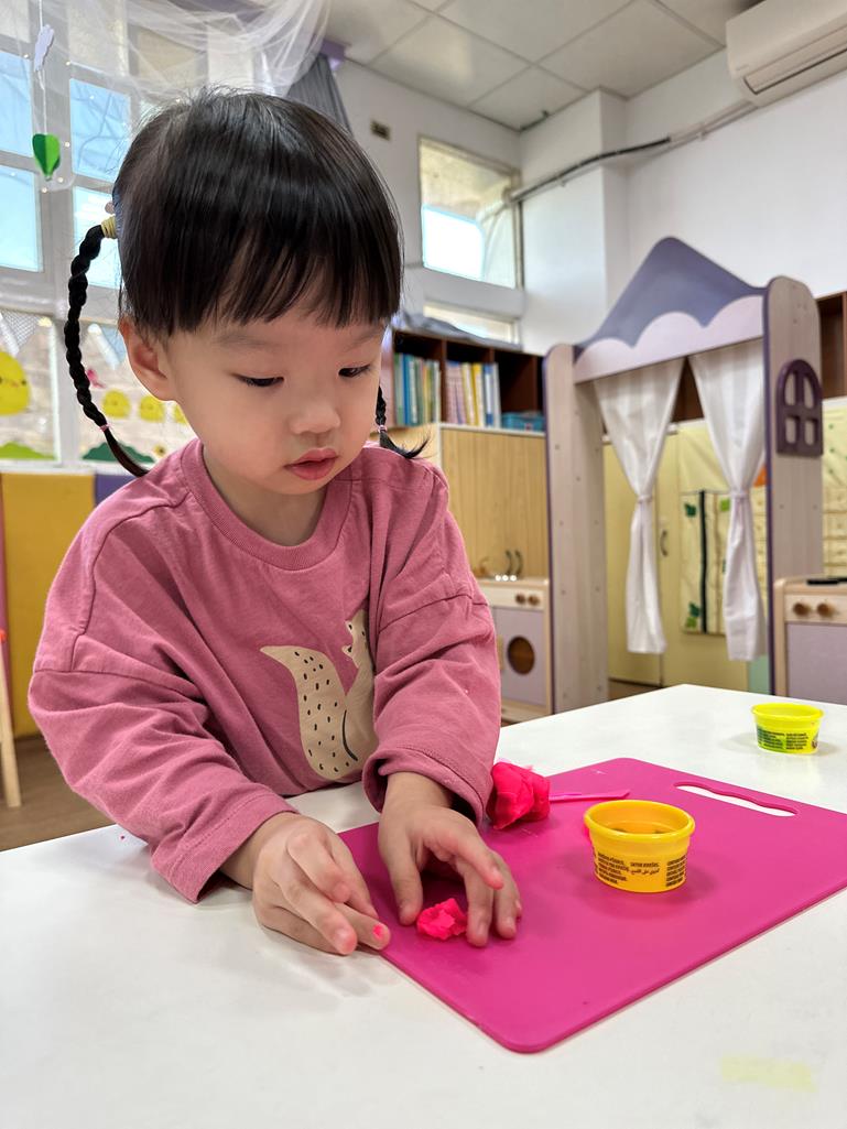 幼兒自由地用手揉、捏、搓、壓黏土,感受黏土的質地與變化。