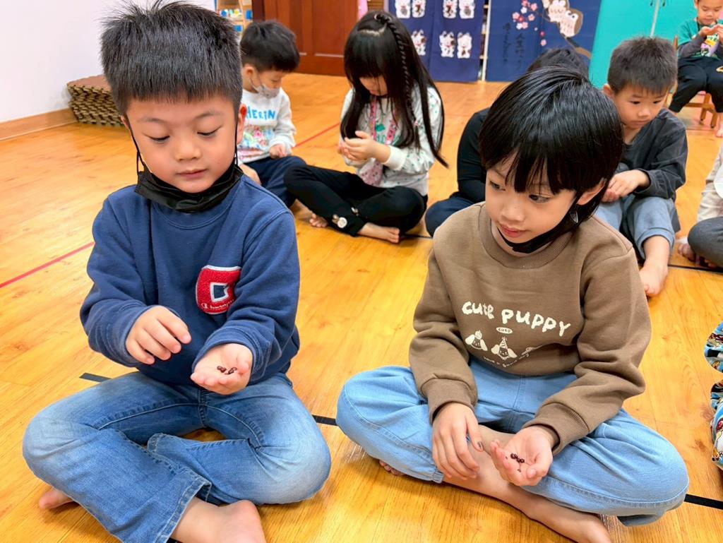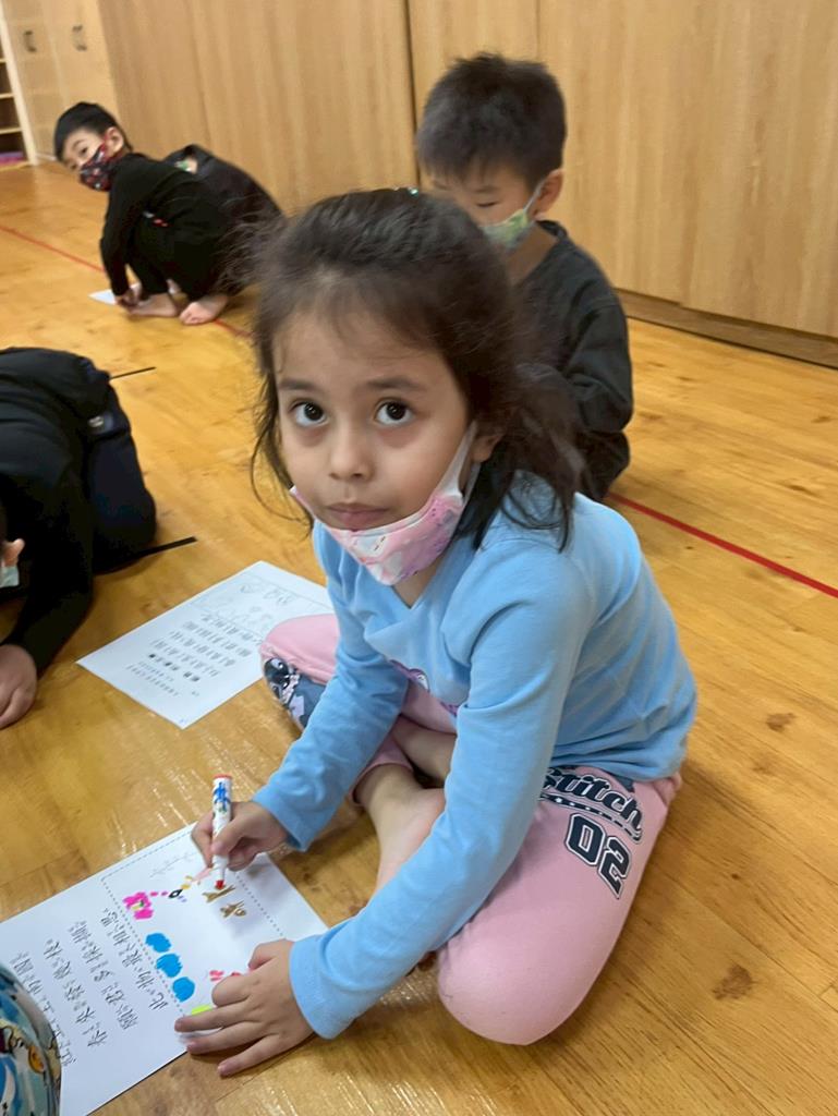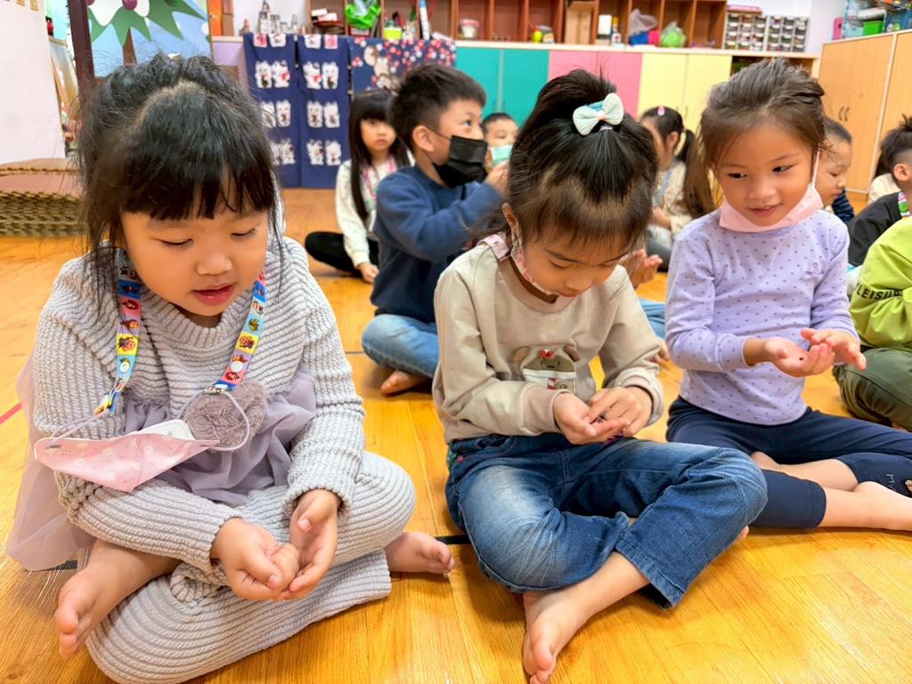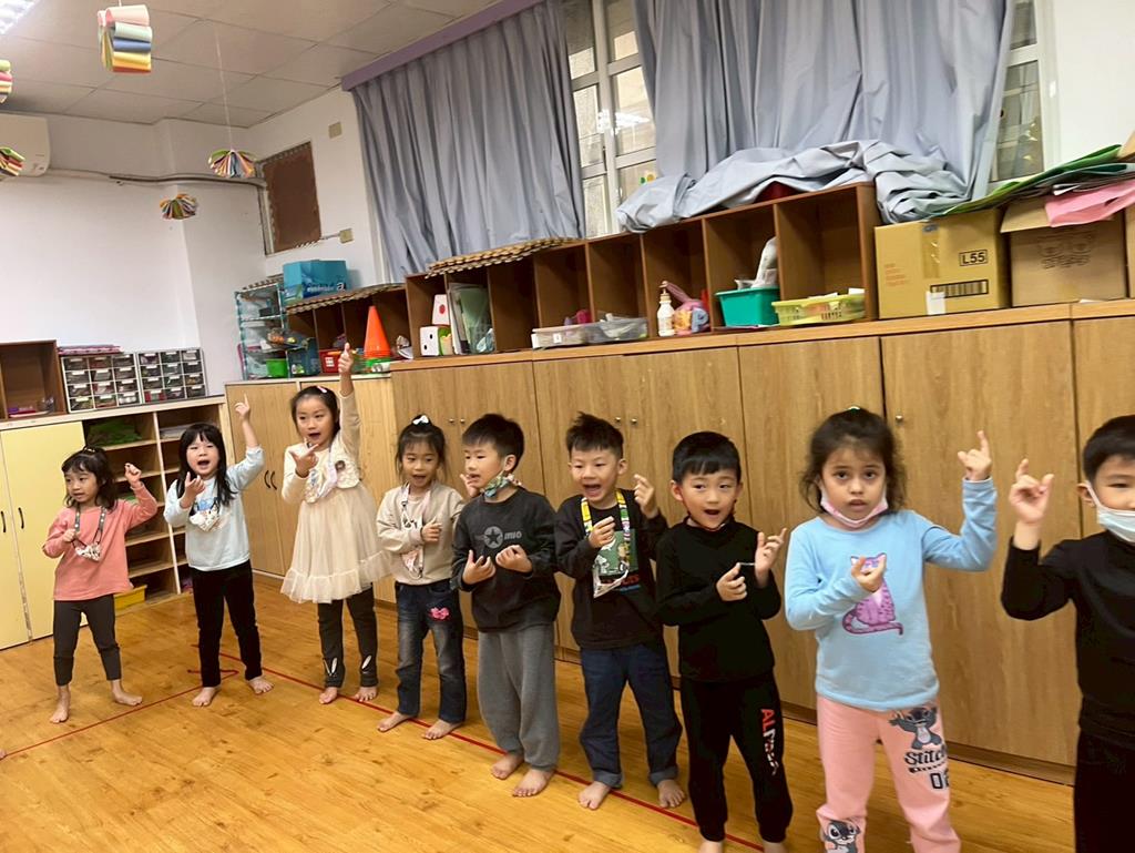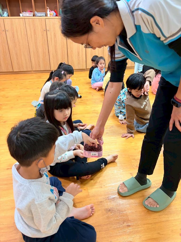 老師朗誦(相思)並介紹詩的意境,透過肢體動作讓幼兒讀出詩的韻律與節奏