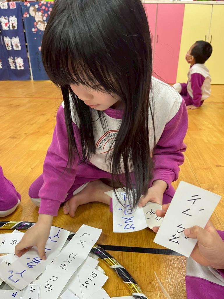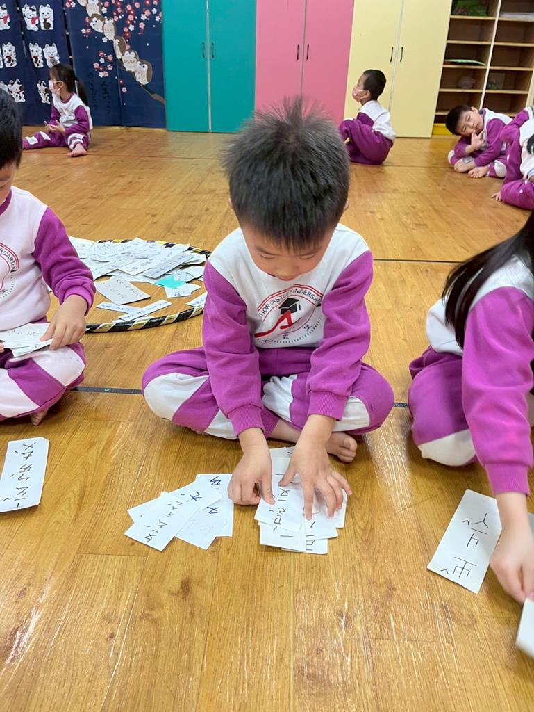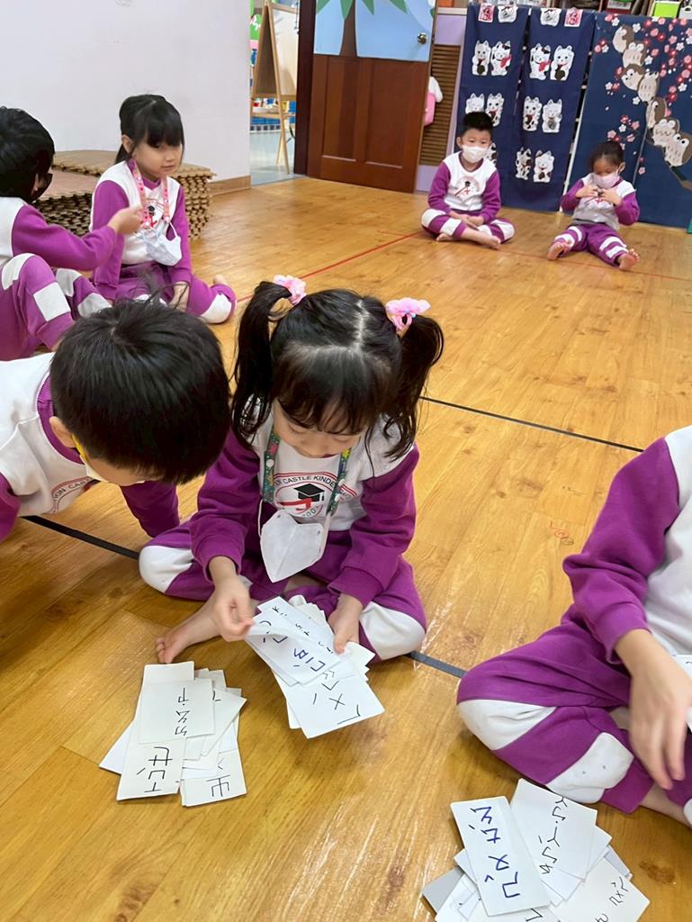 老師拿出語詞卡以計時方式進行PK賽,最後字卡最多者即獲勝